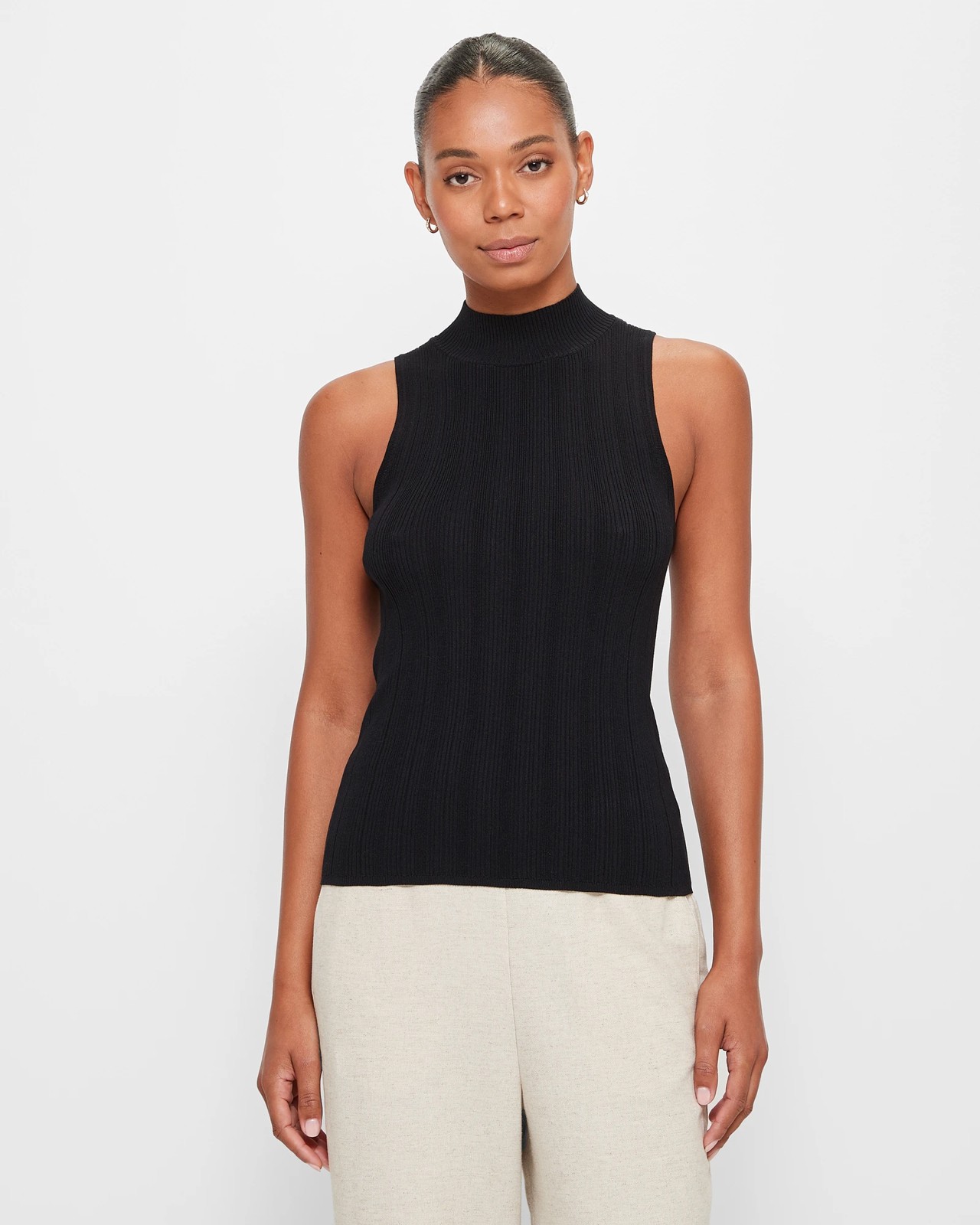 Sleeveless Mock Neck Variegated Knit Top - Preview