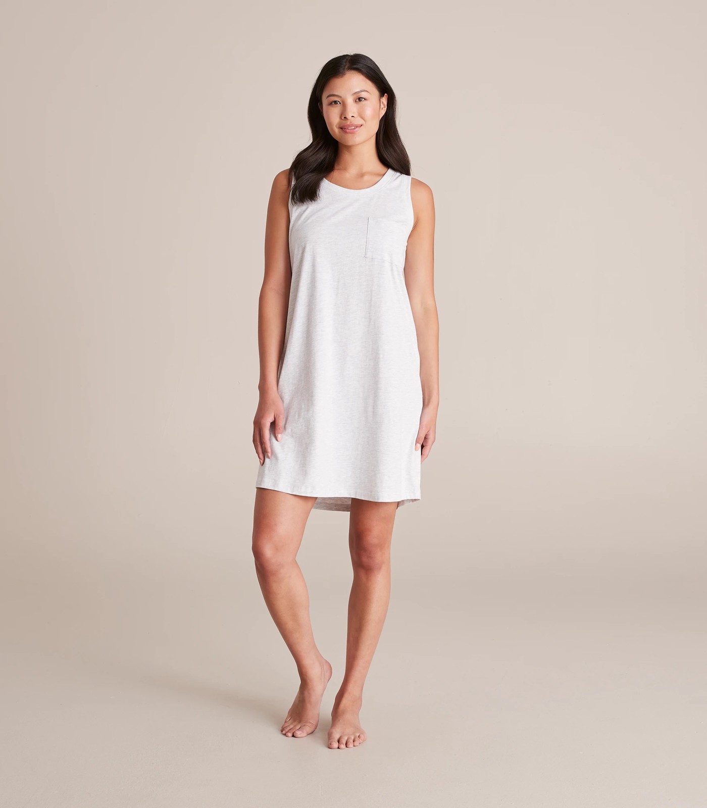For a lightweight night's sleep with ease of movement, the sleeveless nightie features a ribbed round neckline, a sleeveless design with thick shoulder straps, a chest pocket and a short length for ease of movement.