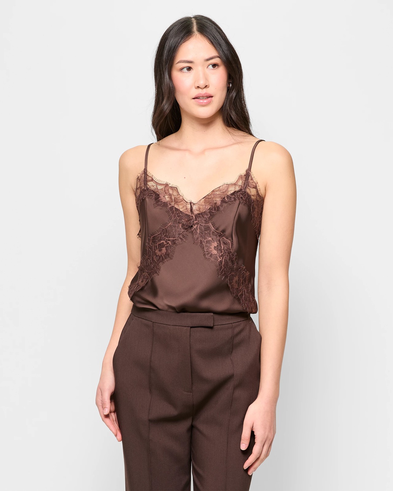 Discover the sophistication of our Sleeveless Satin Lace Cami. Designed from smooth polyester, this cami features a gentle satin touch that's a delight to wear. Delicate lace accents adorn the chest and underbust, adding a hint of grace, making it an ideal choice for various occasions. With adjustable thin shoulder straps and a scoop v-neckline, it offers a snug fit, while the sleeveless cut and straight hemline lend it a versatile appeal. Slip into this cami for an effortlessly chic look that you'll want to wear again and again.