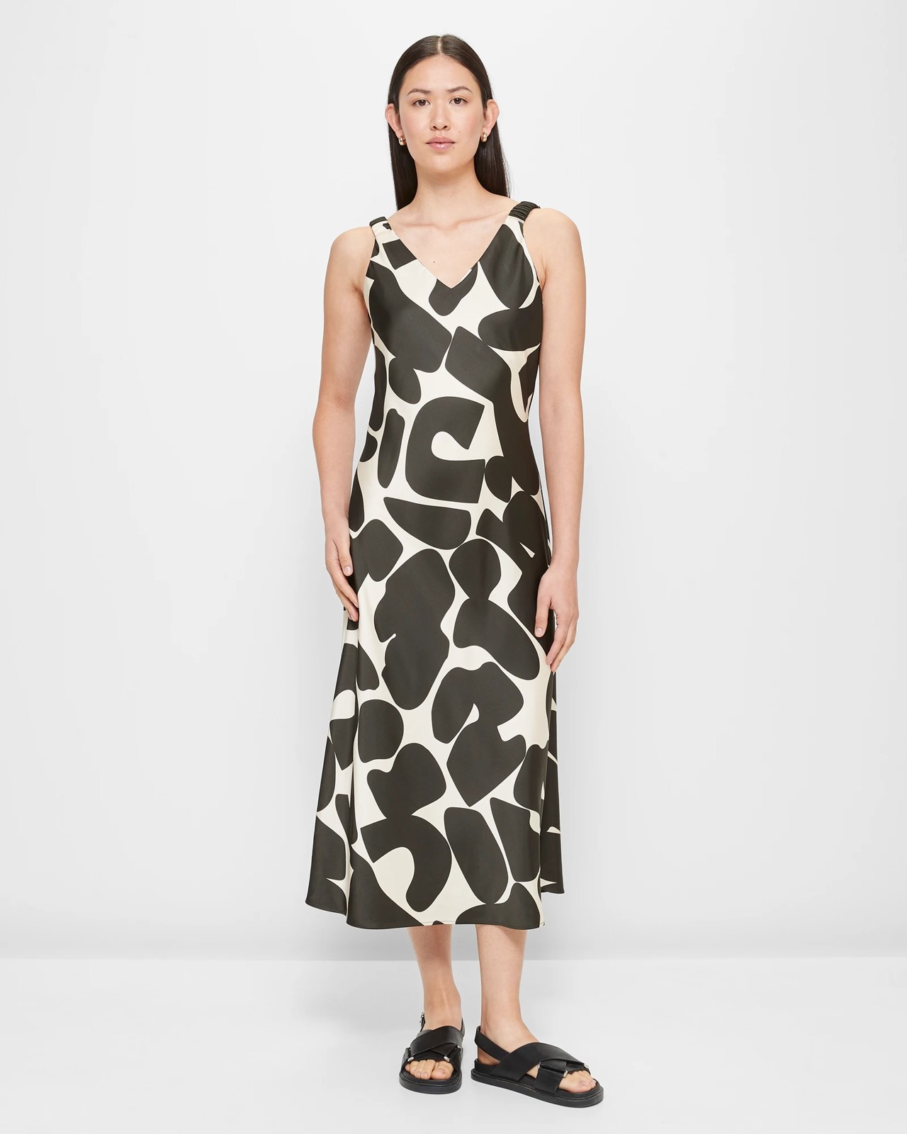 Indulge in elegance with our Sleeveless Satin Slip Dress by Preview. Crafted from a luxurious polyester blend, the dress offers a perfect mix of comfort and sustainability. Its smooth satin finish and intricate abstract print exude sophistication, making you stand out effortlessly. The V-neckline and hourglass silhouette enhance your femininity, while the midi length adds a touch of grace. Wear for any occasion and embrace your unique style today!