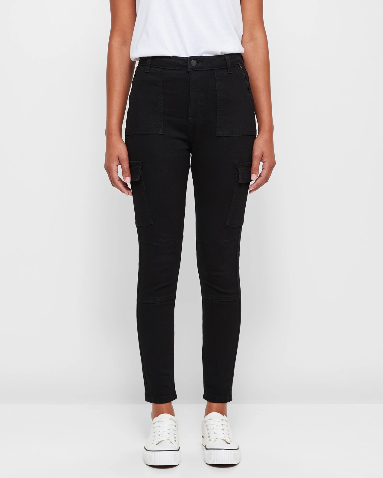 Introducing our Slim Cargo Denim Jeans, the perfect blend of style and comfort. Made from a high-quality cotton/polyester blend, these jeans offer a stretchy fit that moves with you. The regular fit and structured waistband with belt loops provide a classic look that never goes out of style. Featuring a front DENIM embossed button and zip closure, these jeans exude a cool and trendy vibe. Stand out from the crowd with the large front exposed jeans with zip closure and side thigh cargo pockets. The biker-like knees add an edgy touch to your outfit. Designed in an ankle length with a slim cut leg and a straight hemline, these jeans are perfect for any occasion. Complete the look with the back fold over top pockets with snap button closure. Upgrade your wardrobe with our Slim Cargo Denim Jeans and make a fashion statement today!