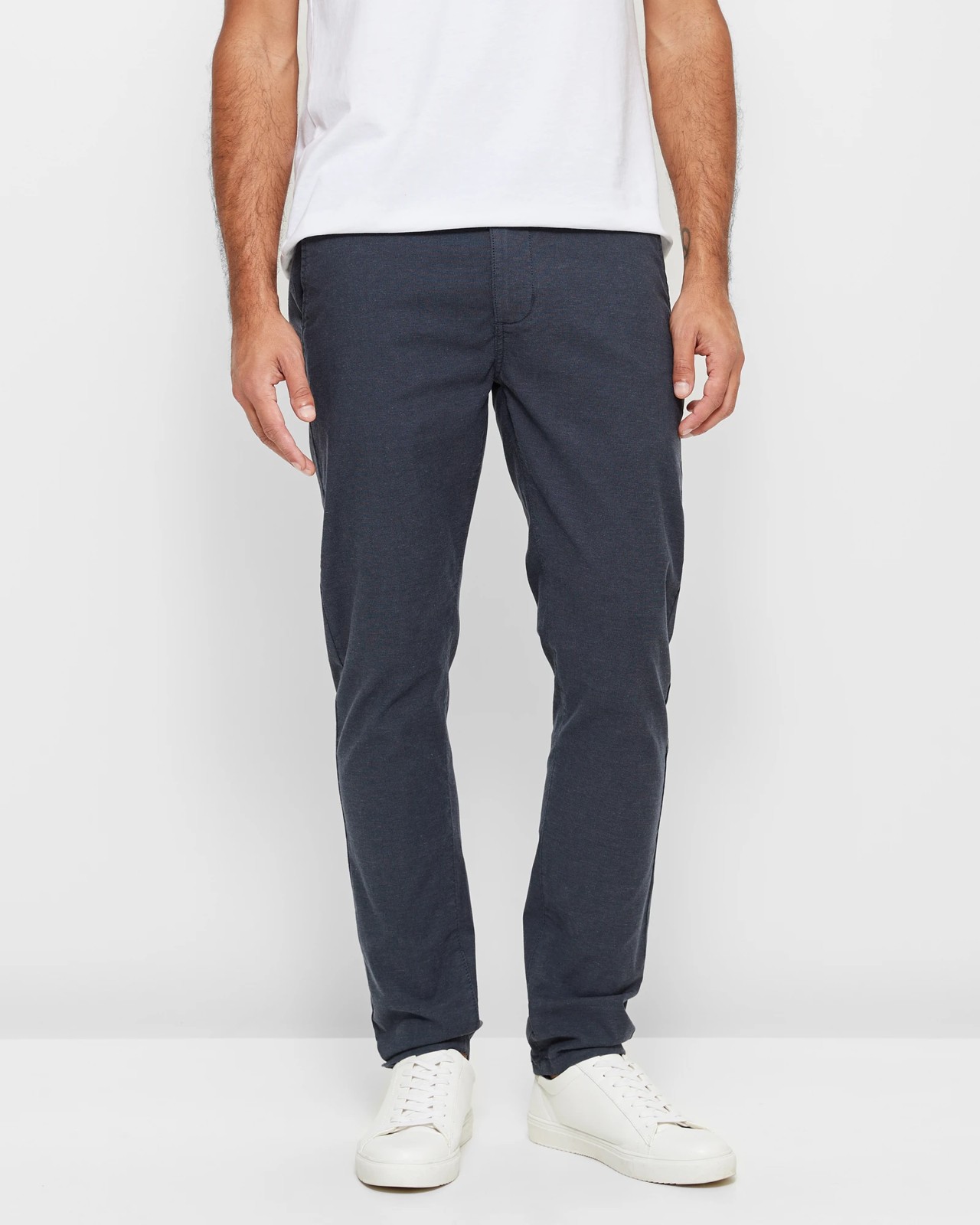 Hidden zip fly with top button closure sits smoothly and gives a clean, comfortable finish