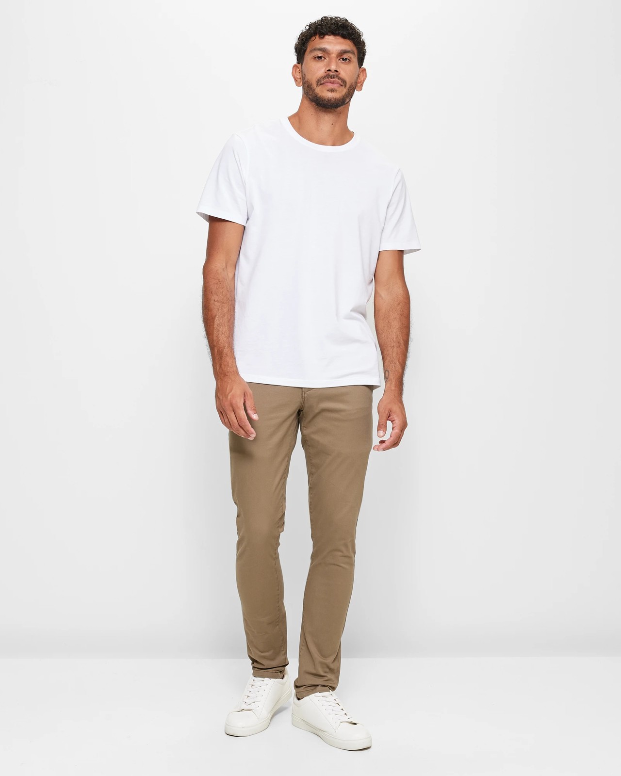 Hidden zip fly with top button closure sits smoothly and gives a clean, comfortable finish