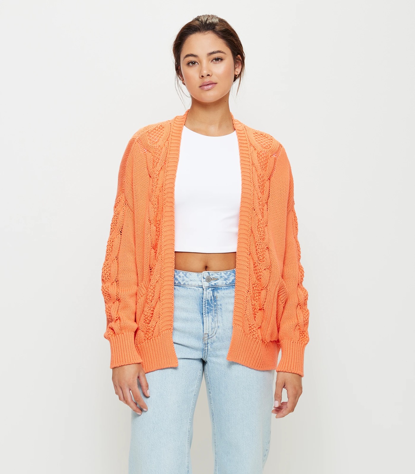 Stay cozy and comfortable in the Lily Loves Slouchy Oversized Cardigan from Target. Crafted from a lightweight cotton fabrication, this cardigan features an all-over knit design with an oversized fit for ultimate comfort. It comes in a bright orange cadmium hue and has a rounded neckline, open front, drop shoulder, long cuffed sleeves, front open pockets and a straight cuffed hemline. Perfect for layering over your favorite looks this season!