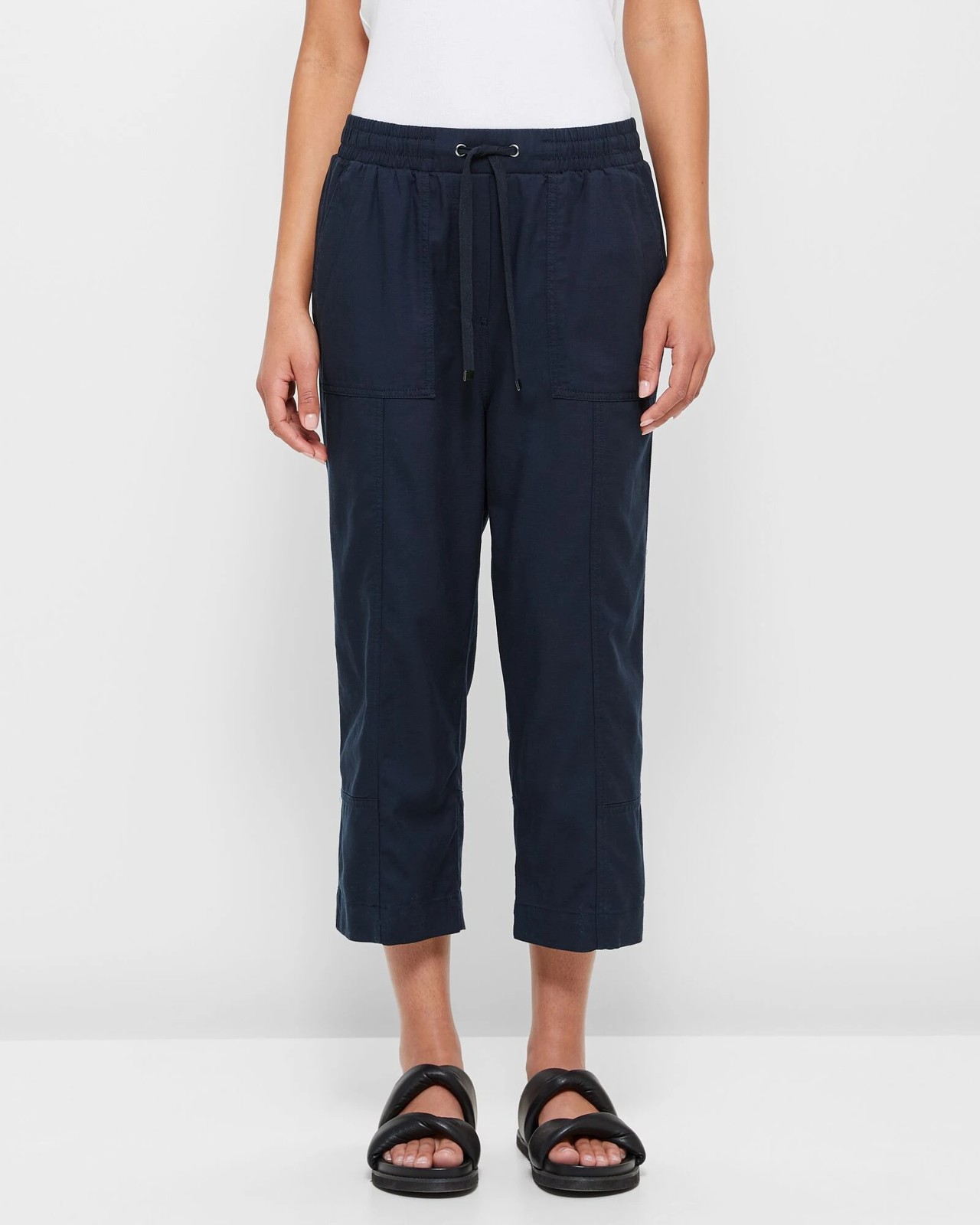 Enjoy ultimate comfort and effortless style with our Slub Seam Detail 3/4 Jogger Pants. Made from a blend of viscose and cotton, these joggers provide a soft and breathable feel that is gentle on your skin. Designed for a relaxed fit, they feature a thick elastic waist with a functional drawcord, ensuring a secure and adjustable fit. The straight legs with seam-detailed stitching and mock front fly add a chic touch. With spacious front pockets and open back pockets, functionality meets fashion. Enhance your wardrobe with these versatile joggers perfect for everyday wear.