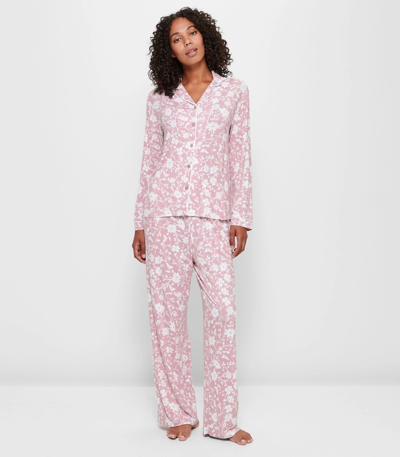 Imagine slipping into the comfort of our Soft Comfort Bamboo Long Sleeve Pyjama Set after a long day. Made from bamboo-rich viscose, these pyjamas are designed for stretch, ensuring you move with ease. The lightweight fabric is gentle on the skin, offering a cosy feel. The elegant Binny floral pink design and detailed piping add a touch that will make your nights both stylish and restful. The top features a round-collared neckline and button-through front, while the pants have an elastic waistband and handy side pockets. Perfect for serene nights and leisurely mornings, this two-piece set is waiting to become your new favourite. Make bedtime the best time, order yours today!