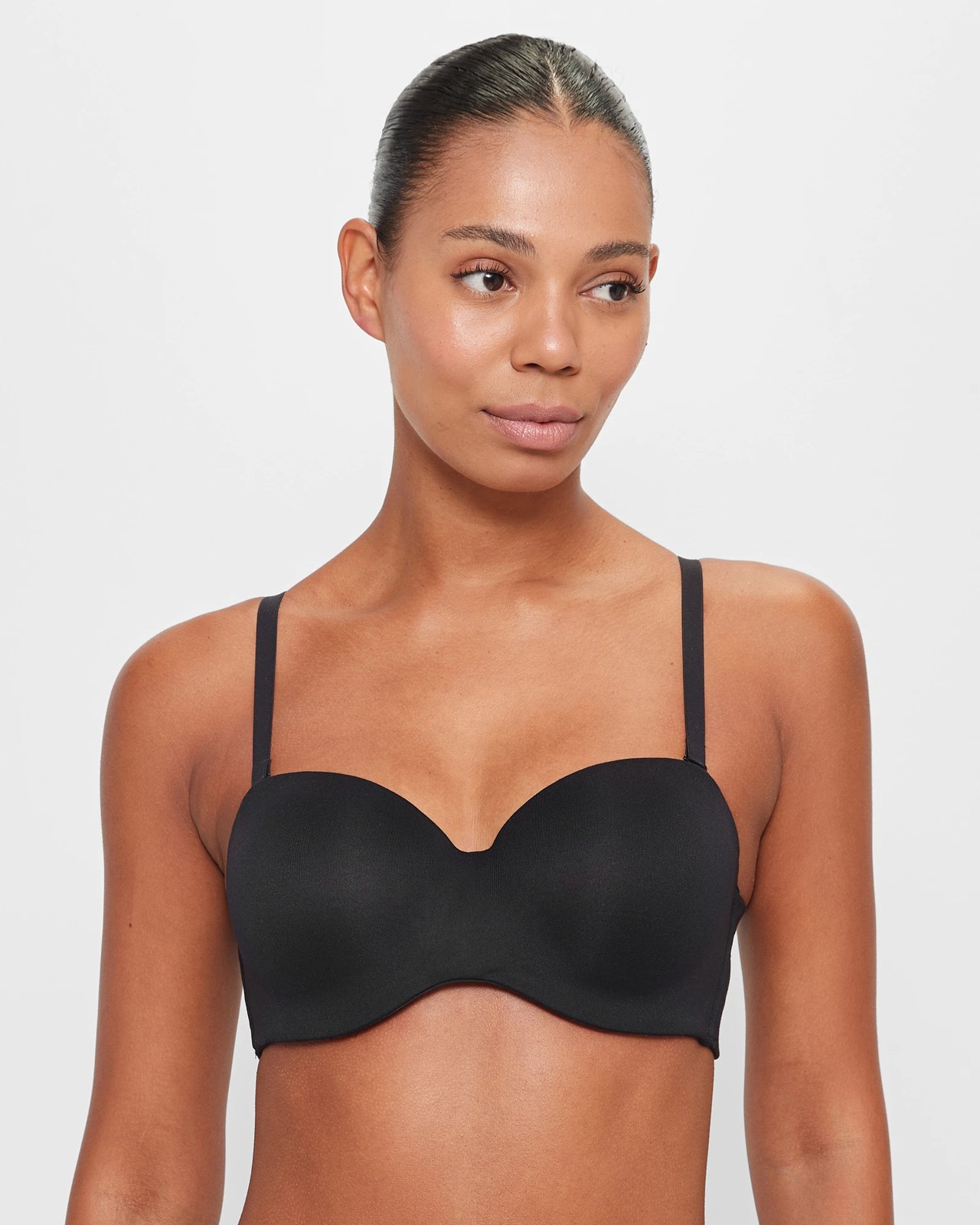 Introducing our Soft Comfort Strapless Bra, a must-have for any wardrobe. Made from a luxurious polyester rich fabrication, this bra offers the perfect blend of style and comfort. With its stretchy material, it provides a secure and snug fit, ensuring all-day comfort. The sweetheart neckline and full cup coverage enhance your natural shape, while the adjustable, removable shoulder straps provide versatility for different outfit styles. The soft padded cups and underwire offer great support and lift, ensuring a flattering look. The back hook and eye closure make it easy to put on and take off. Upgrade your lingerie collection with our Soft Comfort Strapless Bra today and experience ultimate comfort and style. Shop now!