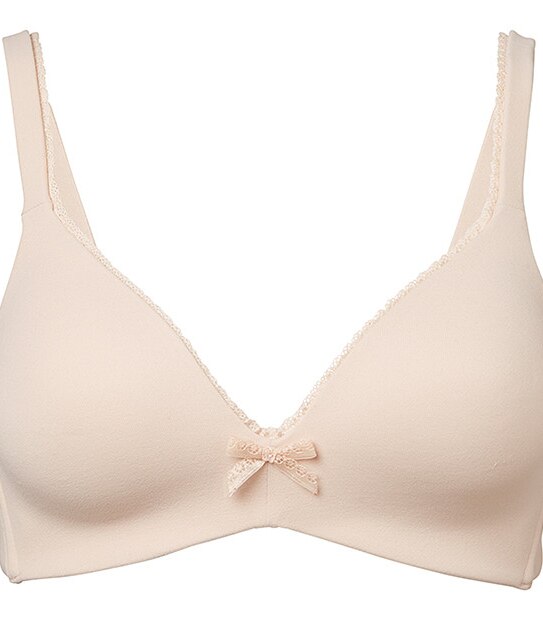 A beautiful lace trim adds a feminine touch to this everyday style. This wirefree bra is the ultimate in comfort, offering super soft plush fabric, bagged out wings for a soft feel against your body and soft straps for all day comfort. Full coverage cups give additional support. Great to wear under t-shirts for a smooth look.