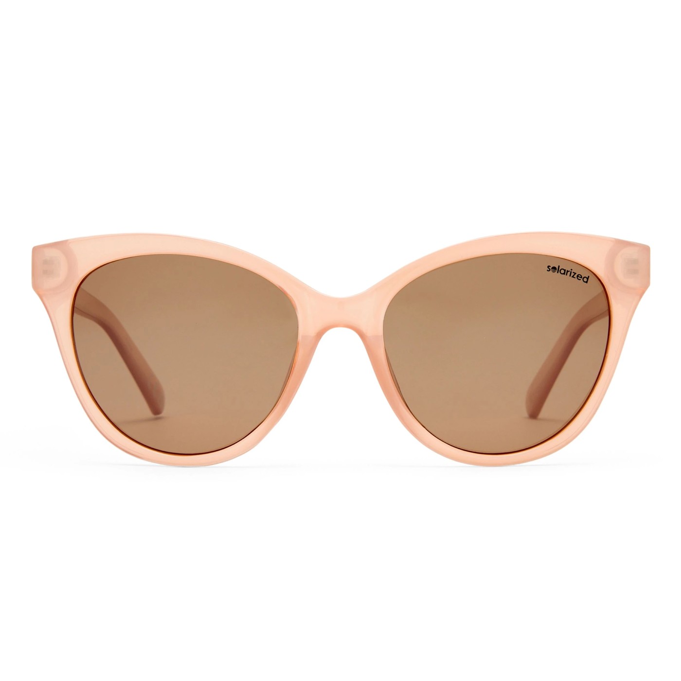 Soft cat-eye: Women's, medium sized, cat-eye in smokey pink with a brown mono colour, polarized lenses to eliminate unwanted reflective glare.