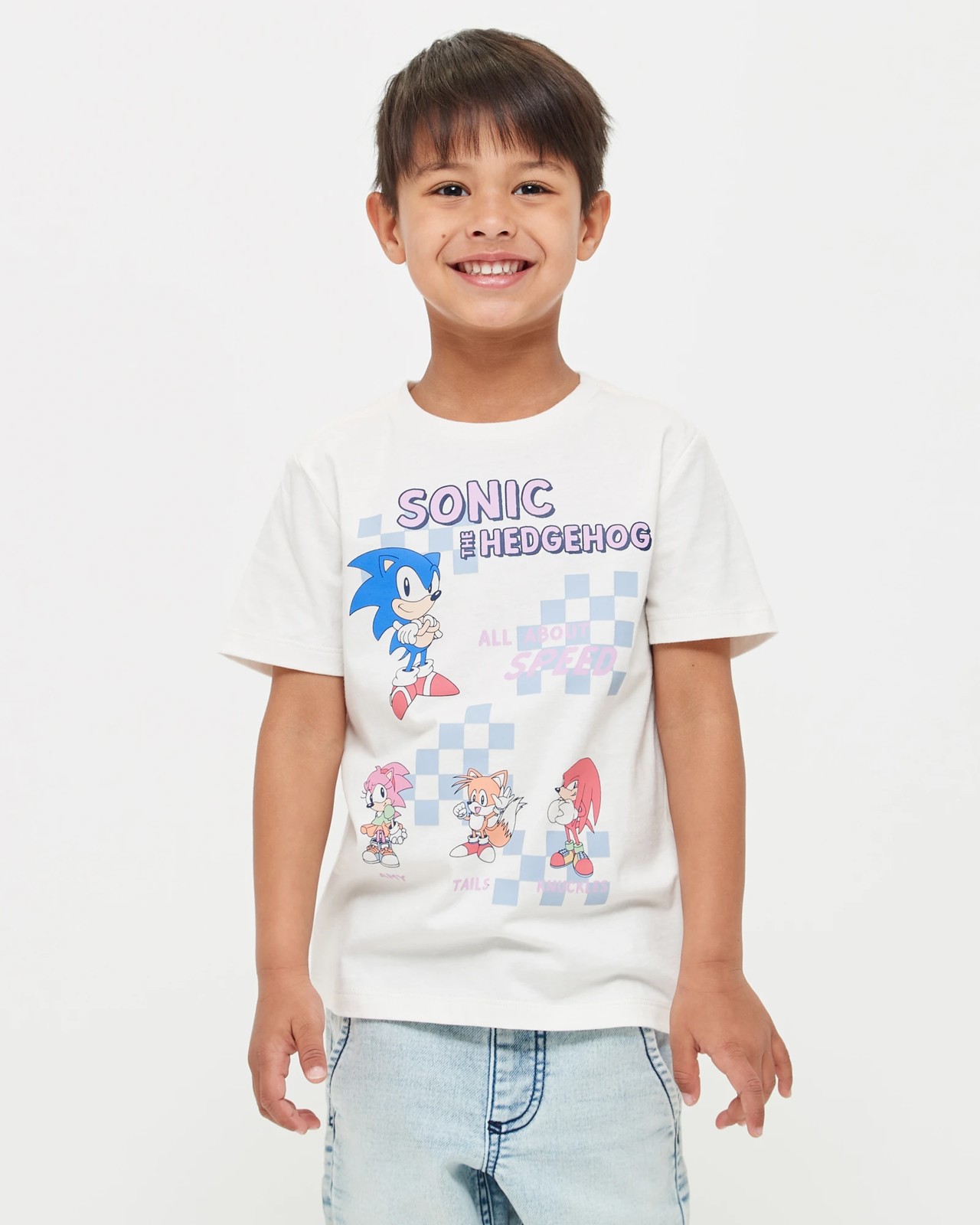 Make sure he stands out from the crowd with this Sonic T-shirt. Crafted from a soft and durable cotton-rich fabric, it offers a regular fit and features a ribbed crew neck, short sleeves and a straight hem. With a large Sonic character print to the front, he'll love showing off his style in this cool t-shirt.