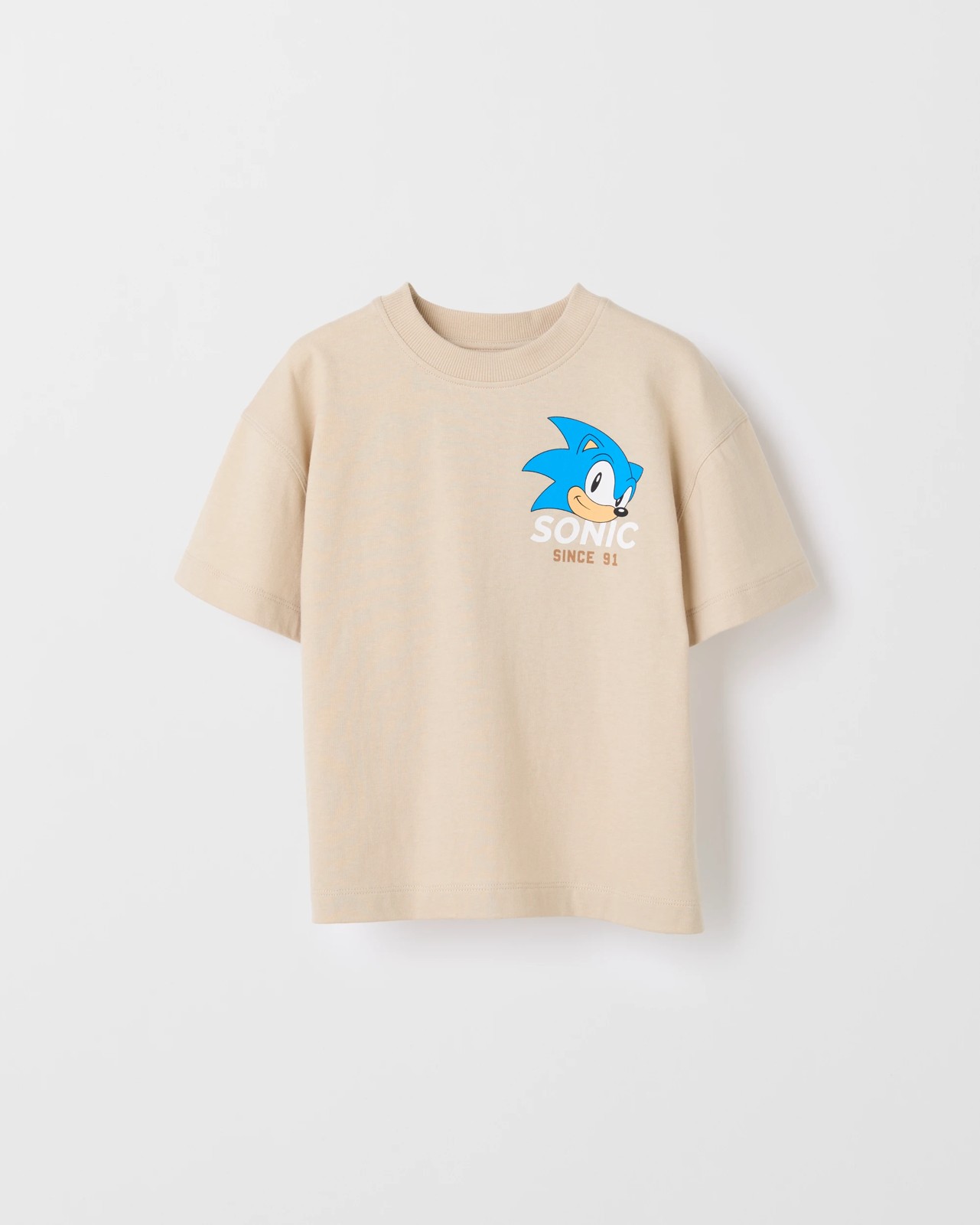 Ignite your child's imagination with the Sonic The Hedgehog Australian Cotton T-Shirt, made from soft Australian cotton jersey knit for lasting comfort. This playful t-shirt offers a regular fit with a ribbed crew neckline and relaxed drop shoulder, keeping your youngster cool and comfortable throughout every adventure. The small side chest print adds just the right touch of Sonic spirit, while the striking back print lets their fandom shine from every angle. Whether they're off to play with friends or simply relaxing at home, this t-shirt is designed for effortless style and easy movement. Brighten their day and let them leap into excitement—grab this Sonic t-shirt and bring home the fun.