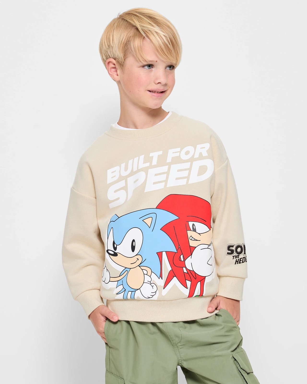 Dive into the nostalgia with this charming Sonic The Hedgehog jumper. Perfect for any fan, young or old, this cream-coloured jumper features a bold Sonic print on the chest, instantly making a statement. Made from a soft cotton-poly blend, it promises comfort and warmth with its fleece lining. The oversize fit, ribbed crew neck, and long sleeves with ribbed cuffs ensure a cosy wear, while the straight ribbed hem adds a neat finish. Whether you're lounging at home or heading out, this jumper will keep you comfy and stylish. Grab yours today and embrace your inner Sonic fan.