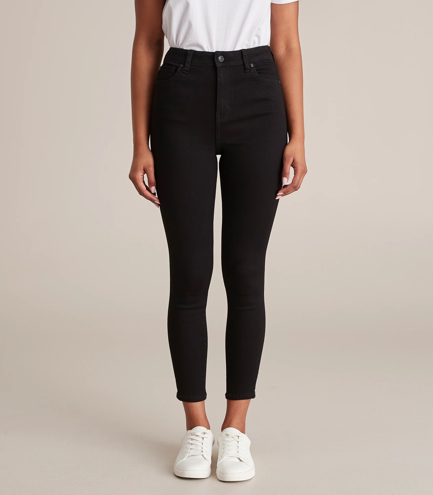 Sophie Skinny High Rise Crop Length Denim Jeans - Black