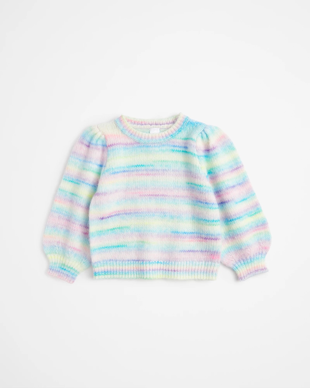 Ever dreamt about finding the perfect jumper for your little one's adventures? Introducing our charming Space Dye Knit Jumper, an ideal blend of style and comfort. This jumper boasts a beautiful rainbow space dye pattern. The crew neck and gathered shoulder design ensure a comfortable fit, while the long sleeves and straight hem make it perfect for chilly evenings. Ready to grab it for your child's wardrobe? Your little one will love the warmth and vibrant feel!