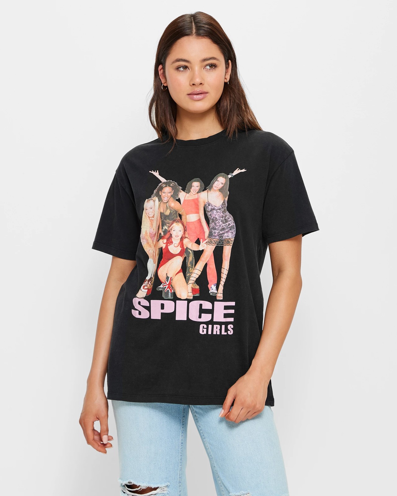 Bold front print of the band with wording SPICE GIRLS