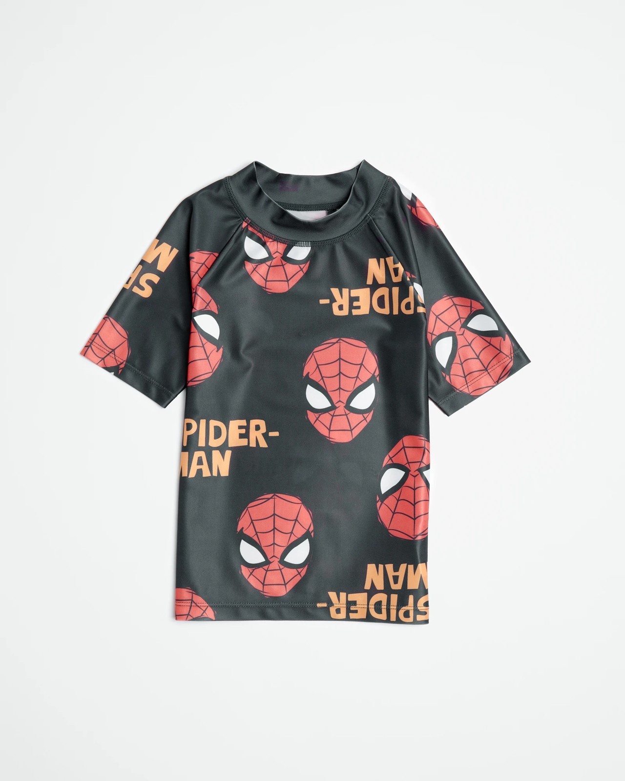Hit the beach in style with the Spider-Man Swim Rashie. Whether he's playing on the beach or dipping his toes in the water, this rashie offers great UPF 50+ sun protection with a regular fit and black colour with all over Spider-Man print. It features a stand collar, short raglan sleeves for full range of movement in the water and a straight hem. Plus, it's unlined for maximum comfort. Let him have fun outdoors and stay safe under the sun!