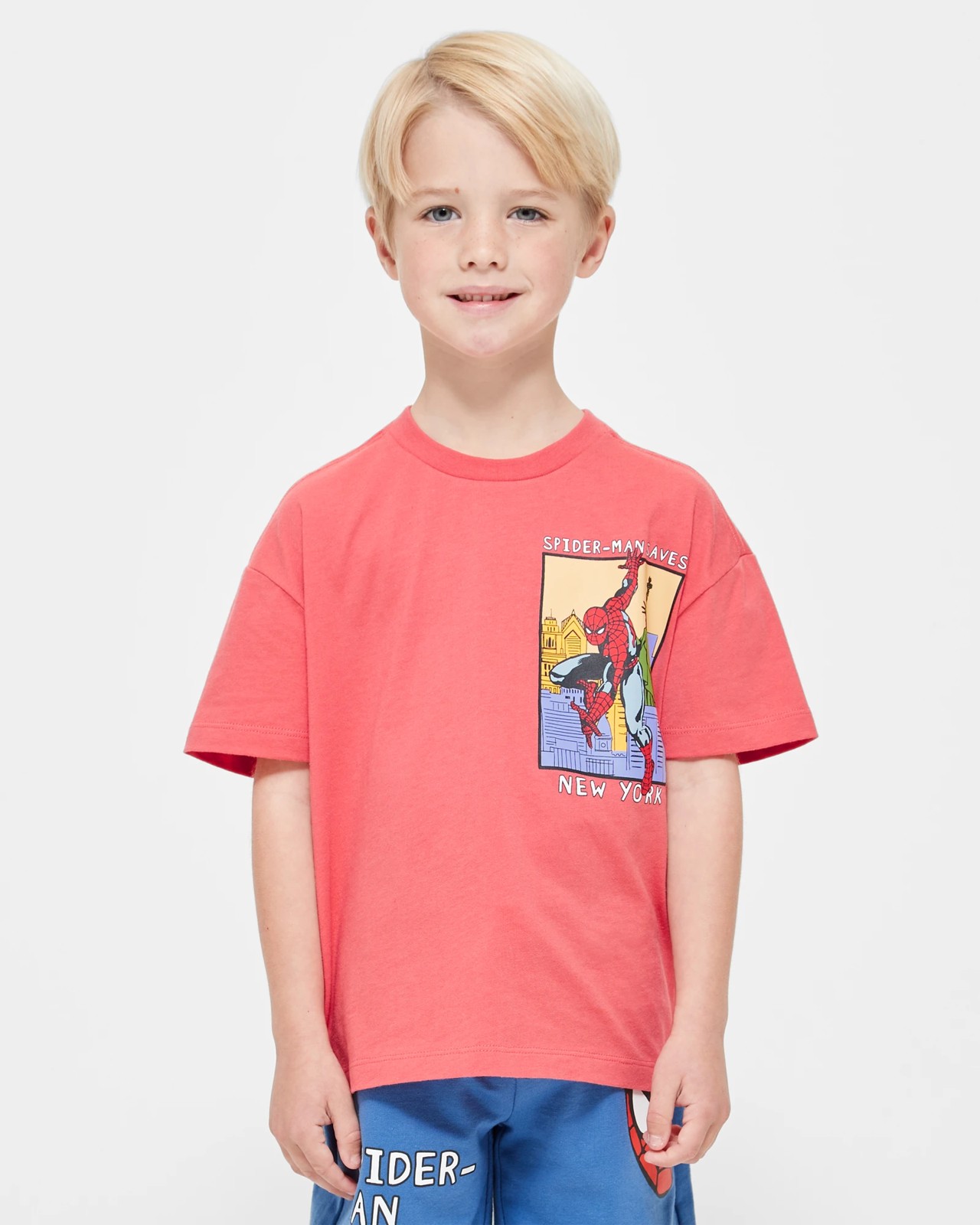Step into action with our Boys Spider-Man T-shirt, perfect for superhero fans of all ages. Crafted from comfortable cotton fabric, featuring a bold Spider-Man print on both the front and back, with a classic crew neck and short sleeves for effortless style. The regular fit and straight hem ensure a comfortable fit for everyday wear. Make a statement with the iconic Spider-Man design displayed prominently in vibrant red.