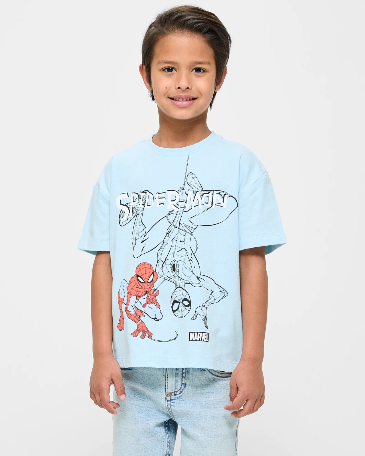 Unleash your child's inner superhero with our Spider-Man T-shirt! This cool, comfortable tee features an eye-catching Spider-Man print on the front, perfect for fans of the iconic web-slinger. Made from 100% cotton, it ensures a soft and cosy fit for everyday adventures. The crew neck and short sleeves make it an ideal choice for any casual outing. Don't miss out - give your little hero the gift of style and fun with this must-have T-shirt!