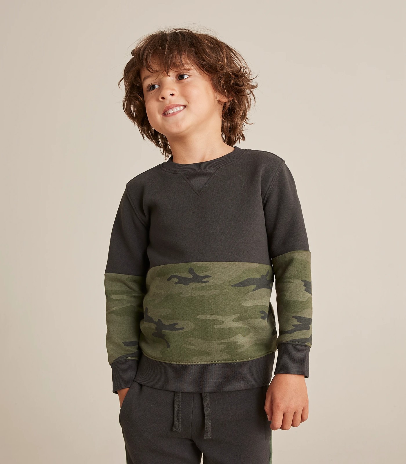 A great addition to his wardrobe comes the Spliced Camouflage Jumper, featuring a ribbed crew neck, camouflage spliced design and fleece lining for extra comfort and warmth.