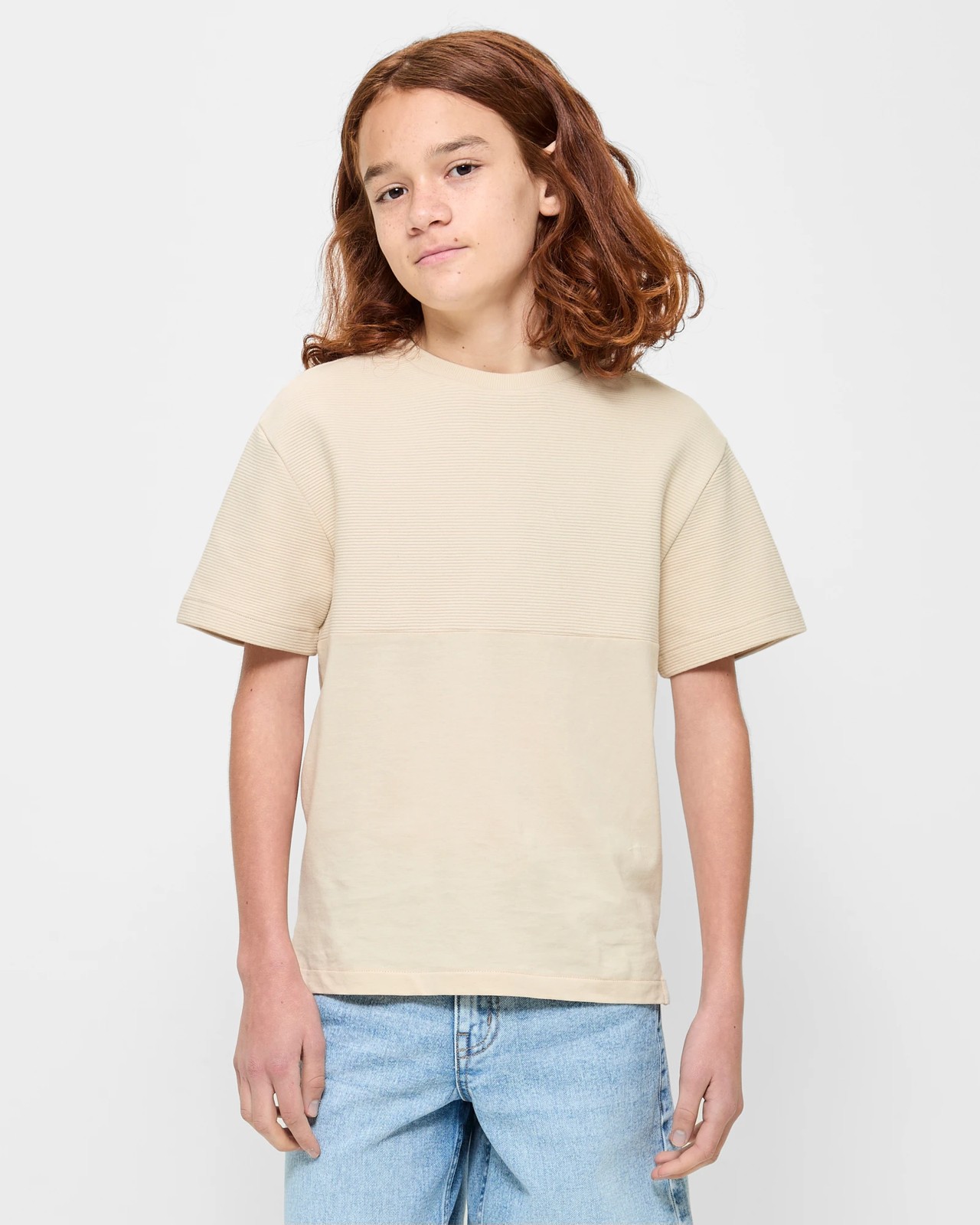 Discover the Spliced Ribbed T-shirt, an essential for any boy's closet. Designed with soft cotton, it ensures supreme comfort throughout the day. The ribbed crew neck and distinctive spliced detail on the front bring a modern twist to a classic piece. Ideal for any occasion, this regular fit shirt allows for easy movement with its straight hem and side splits. Make it a mainstay in your child’s wardrobe and experience the perfect blend of comfort and style.