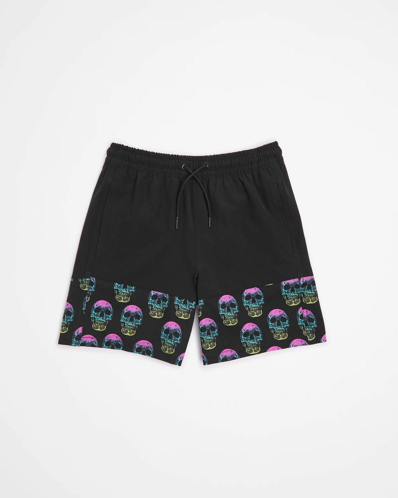 Introducing the stylish and eco-friendly Spliced Skulls Swim Boardshorts! These boardshorts are crafted from recycled materials, making them a great choice for those who want to do their part for the environment. With a regular fit, black color, and elastic waistband with drawcord, these boardshorts offer an adjustable fit. In addition, they feature side seam pockets and an eye-catching spliced design at the thighs with skulls print. A single back pocket with drainage hole is also included. Make a statement while having fun in the sun with these Spliced Skulls Swim Boardshorts!