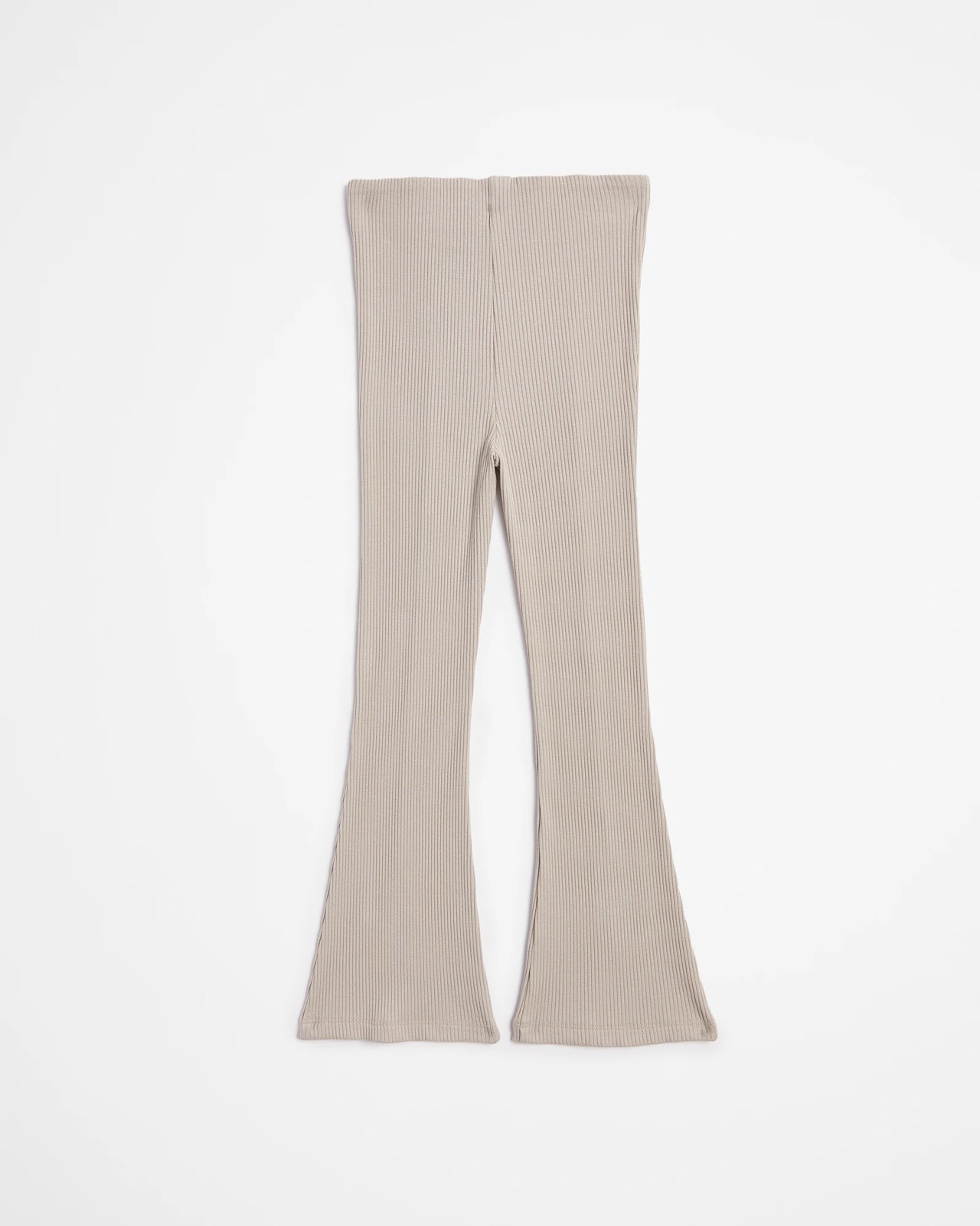 Discover the perfect blend - these leggings offer a cotton-rich ribbed texture with exceptional stretch for ultimate comfort. The light brown hue provides a versatile option to match any top in your wardrobe. Featuring a chic flare leg with a fashionable front split, these full-length leggings are a must-have. Thanks to the internal elastic waistband, you'll get a snug fit every time. Ideal for any casual outing or lounging at home, make sure to grab yours today and experience the perfect balance between comfort and style.