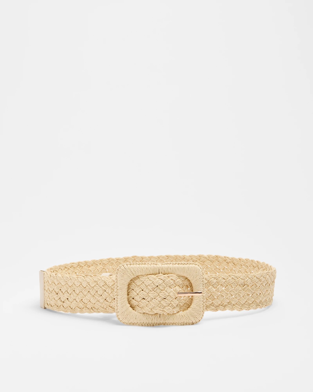 Enhance your style with our elegant Square Buckle Weave Belt for women. This belt features a unique all-over weave design, made from a durable paper fabrication. Its neutral tone makes it a versatile addition to any wardrobe. With a large square buckle and adjustable fit, it is designed to sit comfortably at the waist. The belt loop secures any excess length for a polished look. Perfect as a fashion accessory for both casual and formal occasions, it is sure to complement your outfit perfectly.