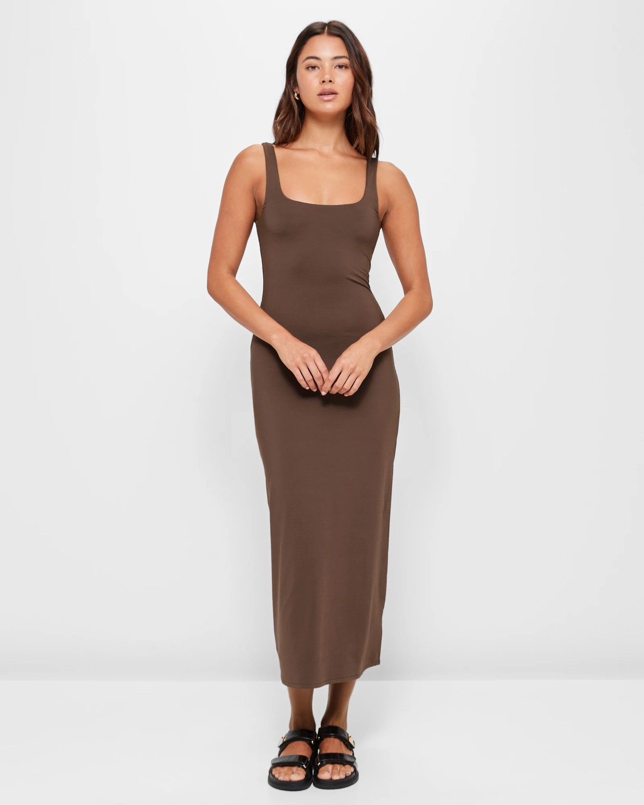 Introducing the Lily Loves Square Neck Body Maxi Dress. Made from a luxurious blend of polyester, this dress offers a comfortable stretch and slim fit. Perfect for any occasion, its body-hugging design and square neckline enhance your curves, while the sleeveless and thin shoulder straps add a touch of elegance. The straight hemline and maxi length give it a classic and stylish look. Whether you're attending a special event or going out for a casual day, this dress is a must-have addition to your wardrobe. Step out in confidence and make a statement with the Lily Loves Square Neck Body Maxi Dress.