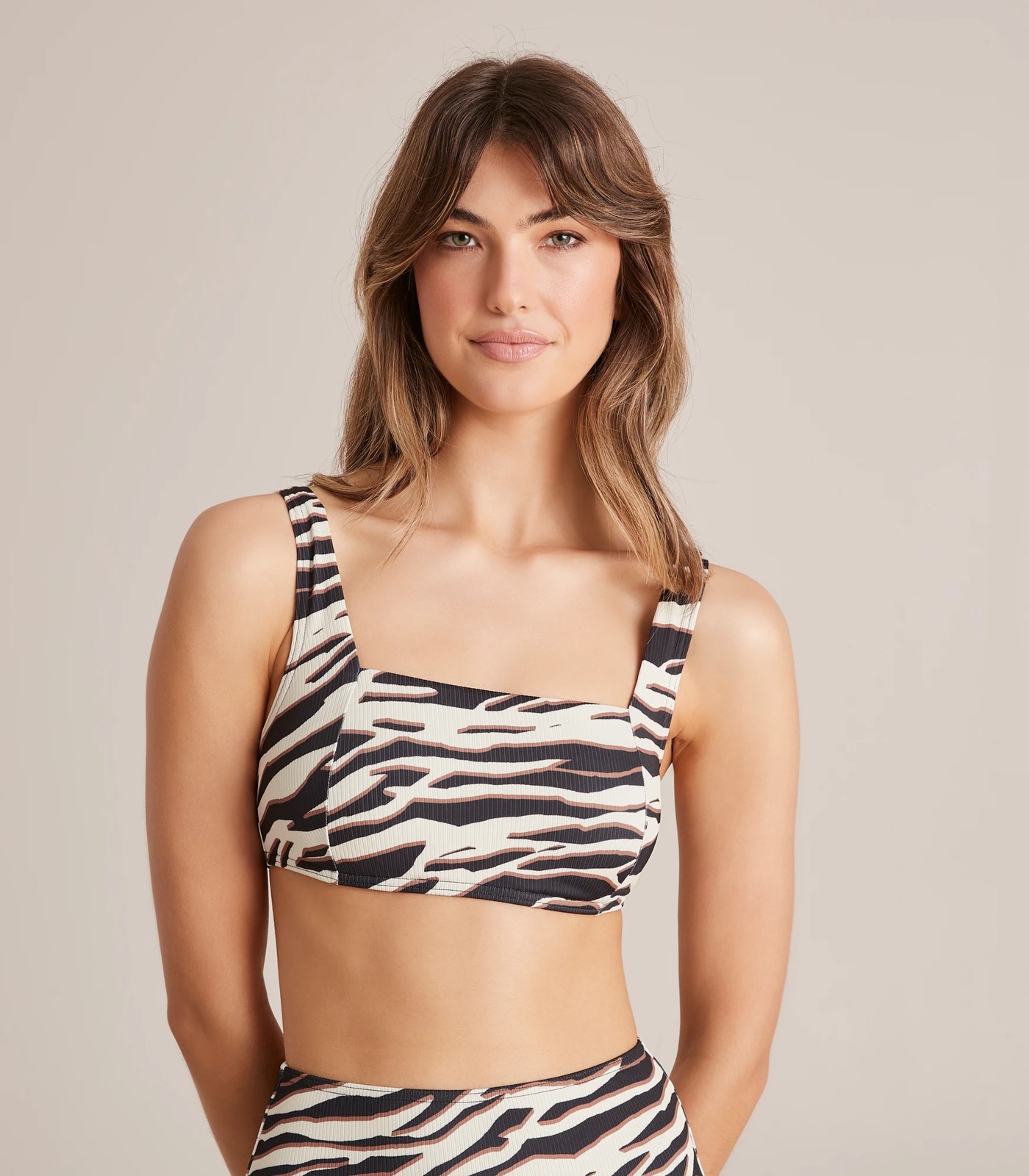 Stay sun smart this season in the square neck swim bikini top. It has a square neckline, an all over ribbed design, thick adjustable shoulder straps for support and it matches perfectly with the folklore floral swim range (sold separately).