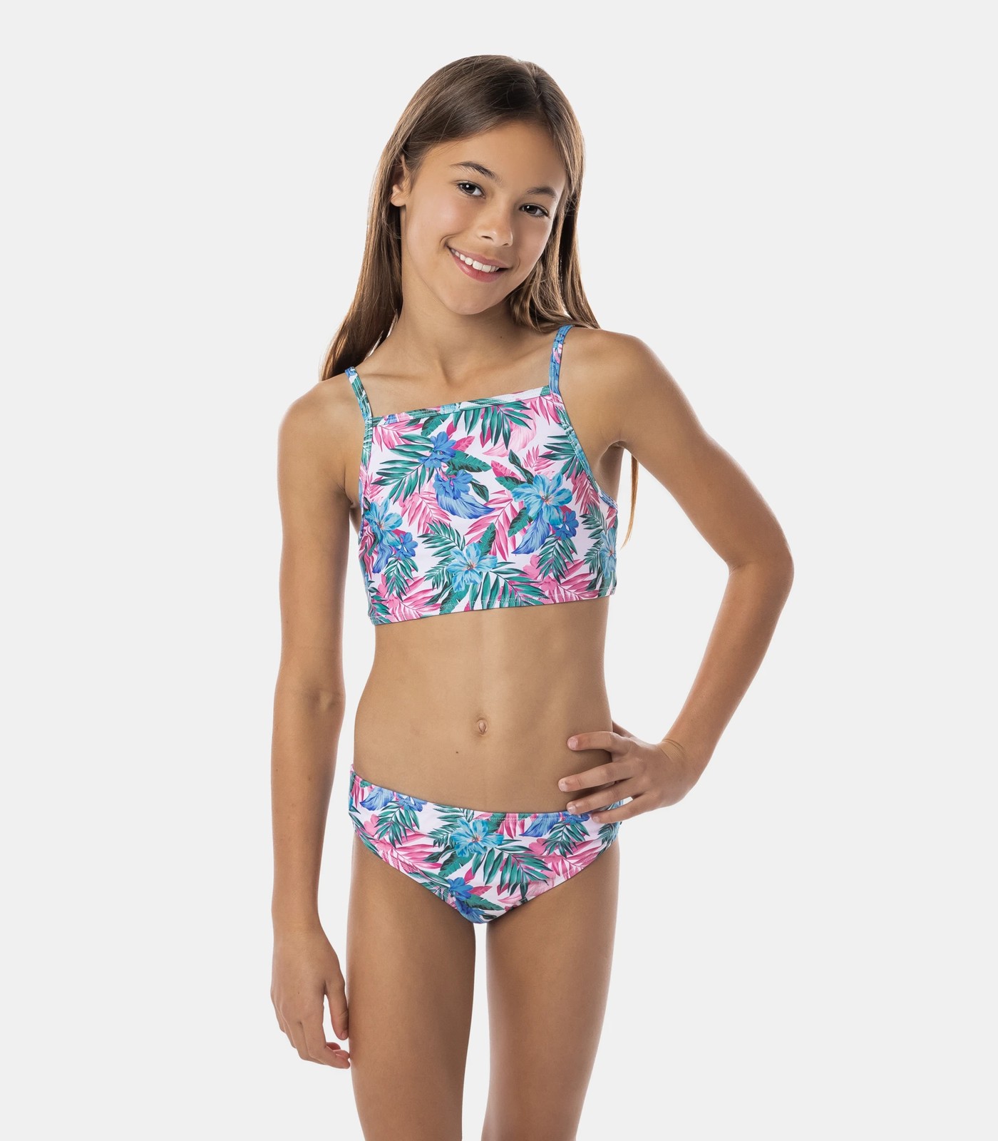 This gorgeous bikini is inspired by tropical holidays. Featuring a flattering square neckline with adjustable straps for support in the water. Pair with the matching short and rashvest for sun protection.