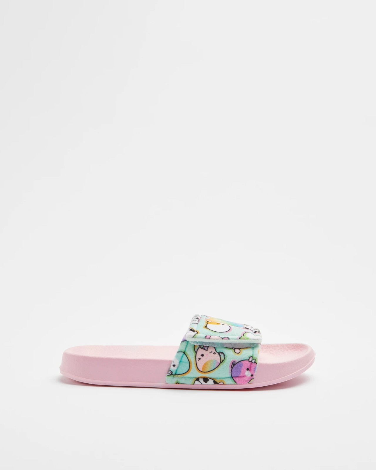 Introducing our adorable Squishmallows Plush Adjustable Slides! These super comfy slides are perfect for little ones to slip into after playtime or before bedtime. Made with a soft synthetic plush upper, these slides provide ultimate comfort with every step. The pink colour adds a fun and playful touch to any outfit. They feature an open toe design and a self-fastening adjustable upper strap for a secure and personalised fit. With a moulded footbed and a synthetic sole, these slides provide cushioned support and durability for all-day wear. Treat your little ones to these cute and cuddly Squishmallows Plush Adjustable Slides today!