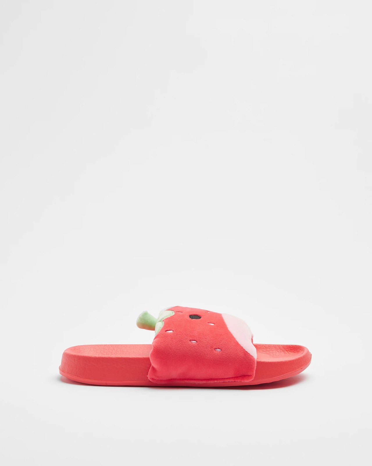 Introducing the Squishmallows Strawberry Plush Slides, the perfect combination of cuteness and comfort. These adorable kids slides feature a synthetic plush upper in a vibrant red strawberry design that will make any little one smile. With an open toe and a moulded footbed, these slides provide a cosy fit for all-day wear. The synthetic sole offers excellent traction, so your little one can run and play with confidence. These Squishmallows slides are not only fashionable but also incredibly soft, ensuring maximum comfort for your child's precious feet. Treat your little one to these delightful slides and watch them walk on clouds.
