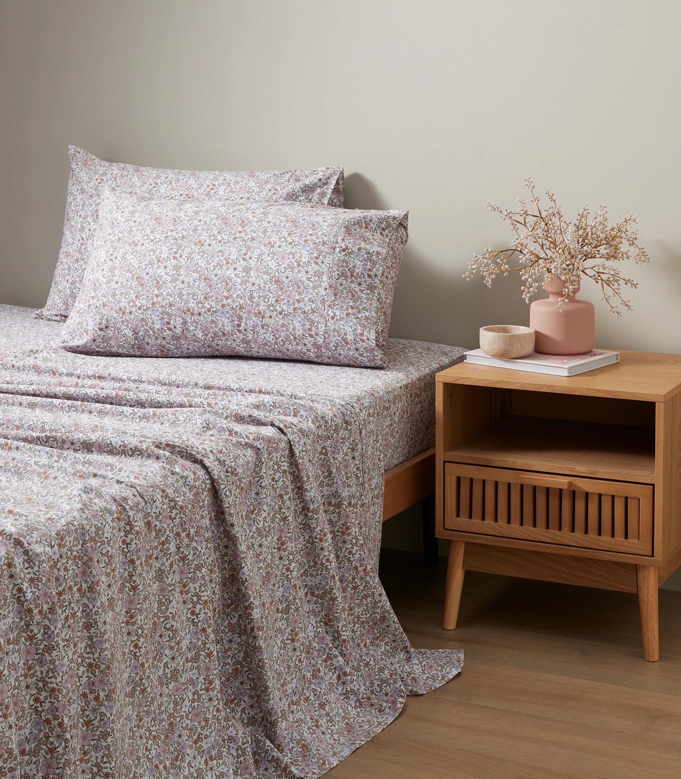 Create a cosy, comfy space for sleep with the Stonewash Printed Sheet Set. This gorgeous floral sheet set is made from soft, breathable cotton and includes a flat sheet, fitted sheet and two pillowcases.
