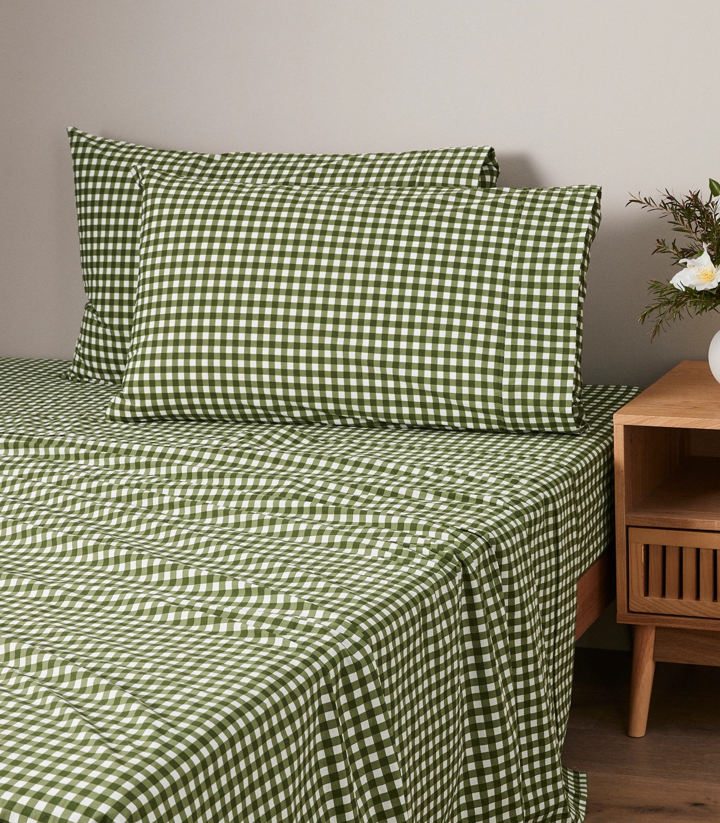 Style your bedroom with this Stonewash Printed Sheet Set! This sheet set is perfect for any bedroom and comes in three sizes - Double, Queen and King (sold separately). Each set includes a flat sheet, a fitted sheet and two pillowcases, ensuring you have everything you need to make the bed of your dreams. Crafted from cotton for comfort and durability, this sheet set is machine washable making it easy to care for. Featuring an eye-catching check design in a stylish green colour, this Stonewash Printed Sheet Set will help you create the perfect sleeping retreat.