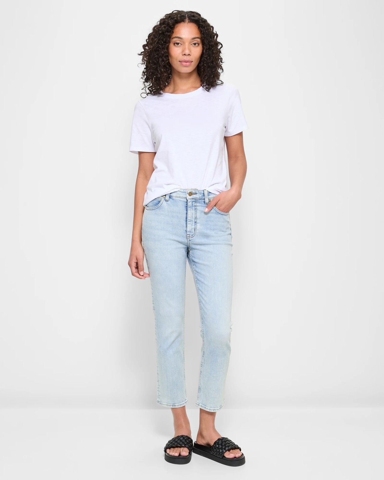 Step up your denim game with our Straight High Rise Crop Length Denim Jeans. Crafted with comfort and style in recycled materials, these jeans offer a flattering fit with a high-rise waist and straight cut leg. The Island blue hue adds a touch of elegance. From casual outings to evening strolls, these jeans are versatile and trendy, making them a must-have addition to your wardrobe. Embrace quality and fashionability without compromising on fashion.