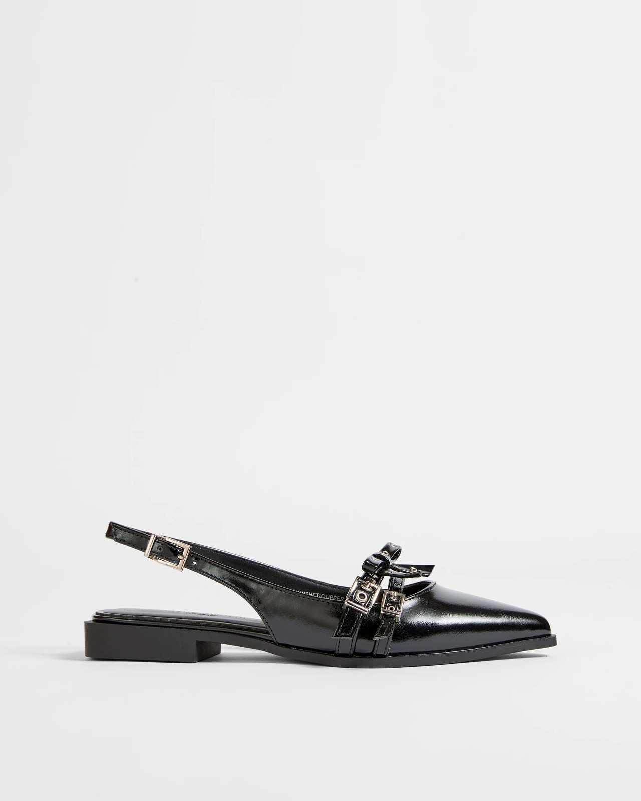 • Open back slip on with adjustable buckled slingback strap