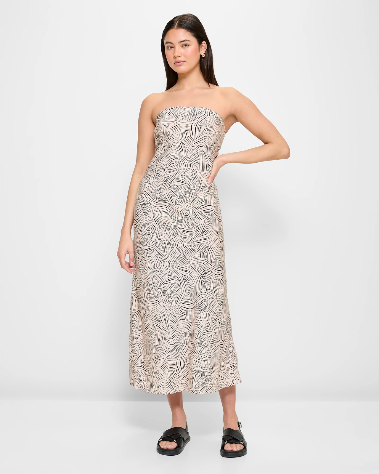 Indulge in elegance with the Strapless Bias Cut Slip Dress by Lily Loves. Crafted from a luxurious blend of viscose and nylon, the dress offers a lightweight feel and a comfortable regular fit. Its strapless design and straight neckline exude sophistication, while the inner thick elastic top ensures a secure hold. Perfect for any occasion, the dress features darting at the chest and a flattering bias cut that falls gracefully at midi length. Complete with a straight hemline and a back invisible zip closure, elevate your style effortlessly with Lily Loves.