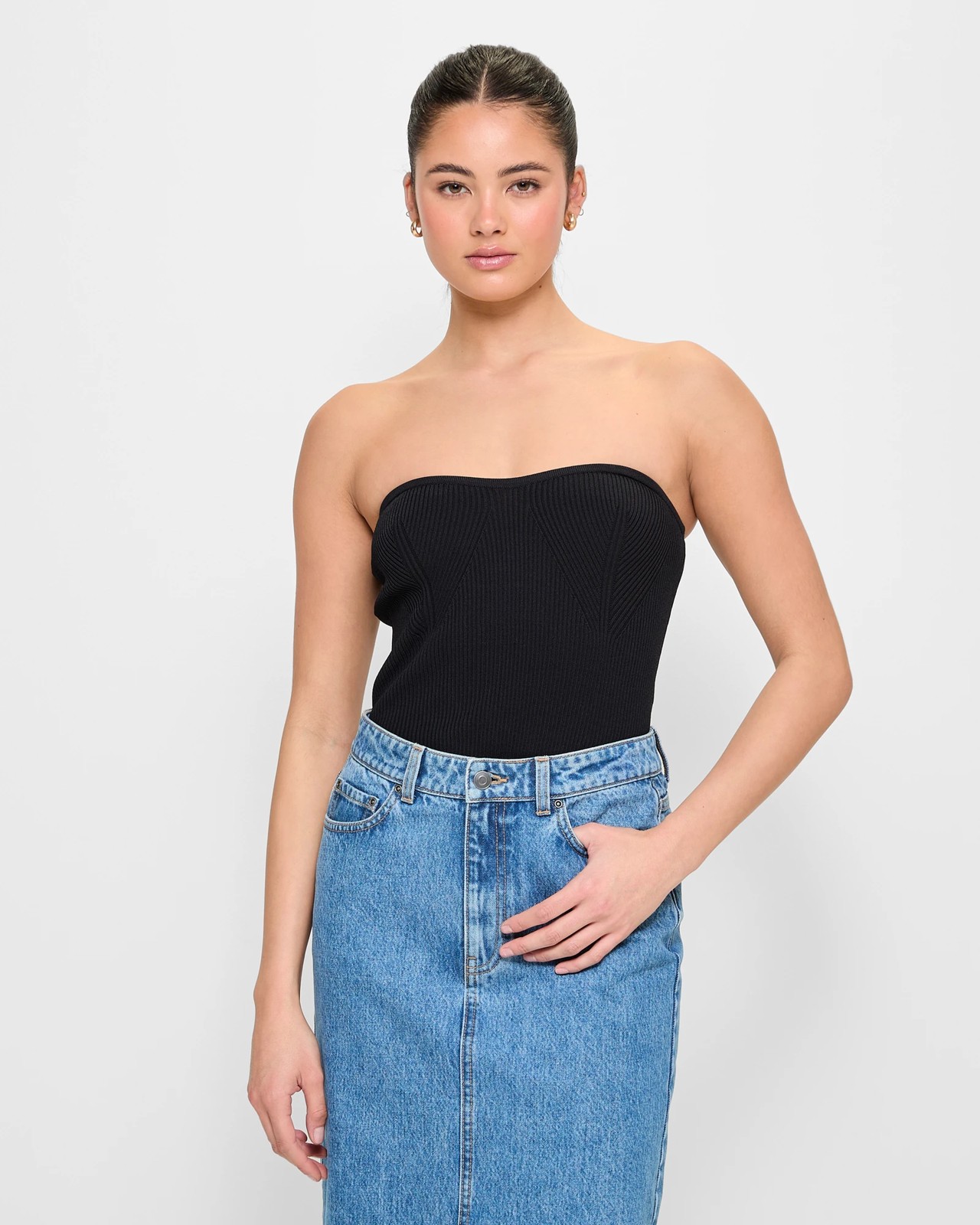 Indulge in the elegance of the Strapless Knit Top by Lily Loves. Crafted from a luxurious viscose/nylon blend, the top features a charming all-over ribbed knit design that accentuates your style. The sweetheart neckline and soft cups offer a flattering fit, making you feel confident and chic. Perfect for any occasion, the top's sleek straight cut and short length create a modern look that is both comfortable and trendy. Elevate your wardrobe with the Strapless Knit Top and enjoy the ultimate blend of fashion and comfort.