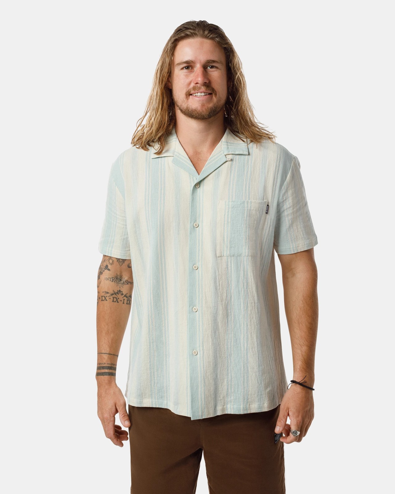 A stylish shirt that will pair perfectly with your favourite bottoms, whether it be on a casual basis or for nights out, this striped textured cotton shirt is relaxed and effortless. It's crafted from soft breathable cotton with a single chest pocket and a resort collar.