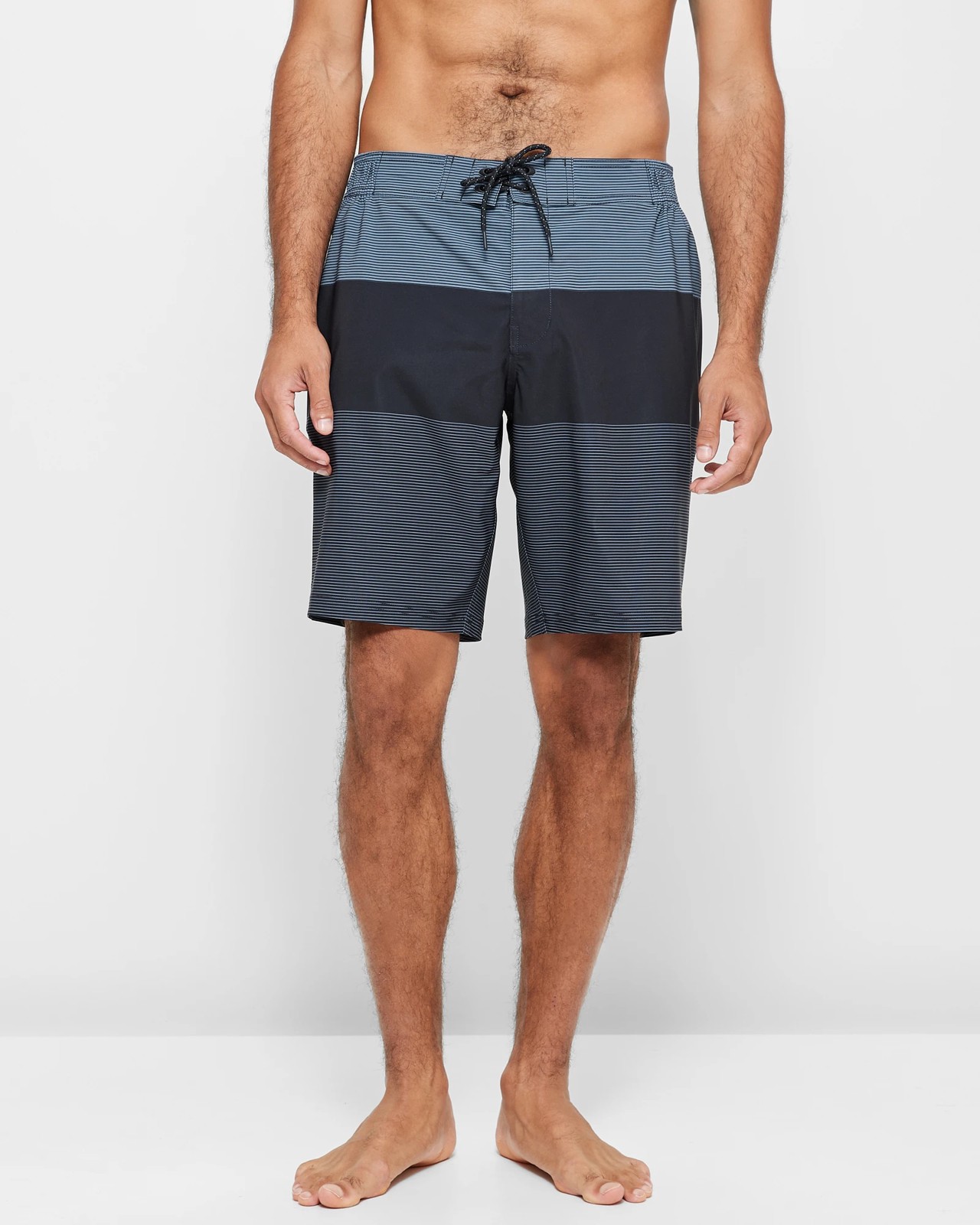 Experience ultimate comfort and style with our Stripe Swim Boardshorts. Made from a blend of polyester and elastane, these boardshorts offer a soft and stretchy feel, allowing you to move freely in and out of the water. With its 4-way stretch fabric, you'll enjoy a comfortable fit that adapts to your body shape. The quick-dry performance ensures you stay dry and comfortable after a swim. Featuring a stylish blue stripe panel design, an elastic waist with drawstring, and a Velcro front closure, these boardshorts provide both functionality and fashion. Complete with side seam pockets, a functional zip closure back pocket, and a mesh inlay, you'll have plenty of storage options for your essentials. Upgrade your swimwear collection today and make a splash with our Stripe Swim Boardshorts!
