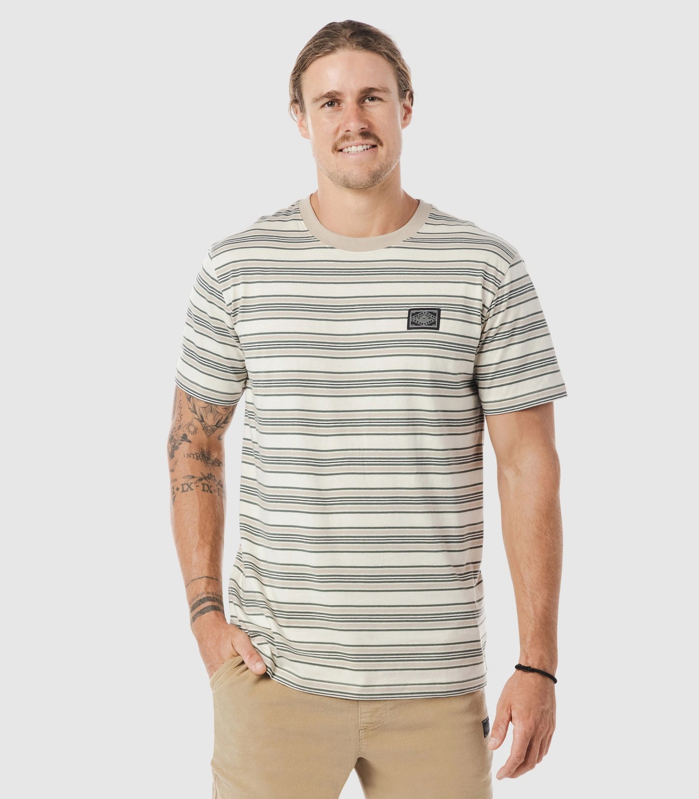 Step into effortless style with our Stripe T-Shirt by Piping Hot. Made from soft cotton, this tee ensures a comfy fit, perfect for any casual outing. The neutral sand colour paired with all-over stripes gives it a versatile edge, while the PH badge on the chest adds a touch of flair. The ribbed crew neckline and short sleeves provide a stylish fit, and the straight hemline makes it a staple for any wardrobe. Refresh your everyday look and grab yours today!