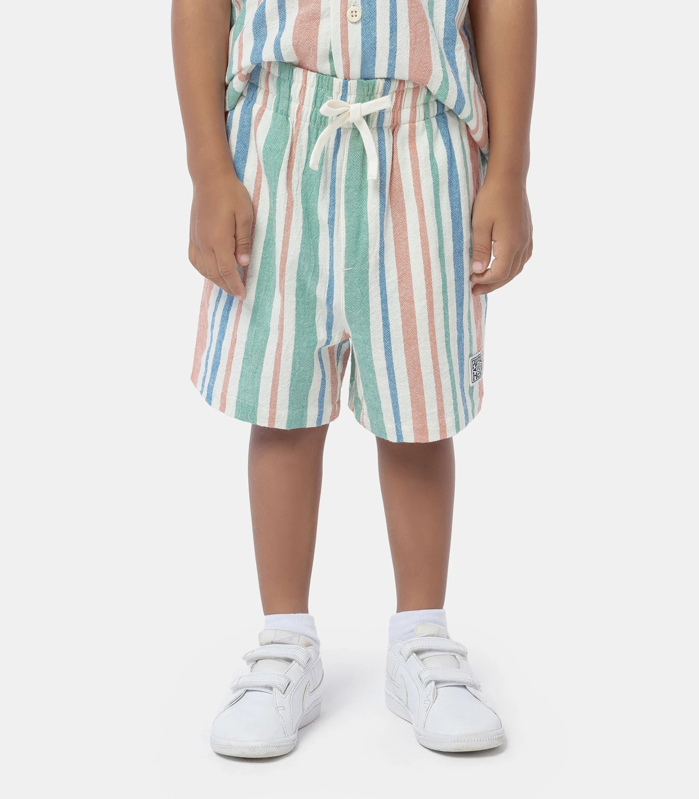 These stylish and comfortable shorts in a multi coloured stripe are fun and playful for all occasions. The elastic waist ensures a perfect fit every time, while two side pockets provide additional storage space. The straight hem and regular length make them ideal for boys of all ages.