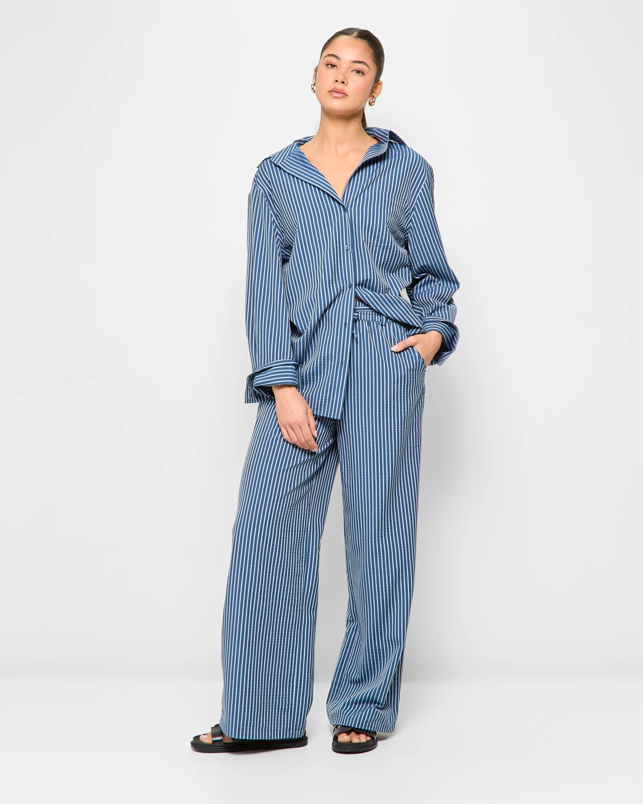 Step into confident style with the Striped Pull On Pants from Lily Loves. These trousers feature a soft polyester and viscose blend with a textured finish and lively striped design that brings personality to any ensemble. Thanks to the easy pull-on fit, you’ll find these pants convenient for busy mornings, while the mid-rise waist with elastic and a detachable tie belt allows you to adjust your look with ease. Side pockets and a wide leg cut offer both practicality and a modern twist. Ideal for work, brunch or a relaxed day out, these trousers add a cheerful touch to your daily wardrobe. Update your outfit rotation and enjoy comfort without compromise.