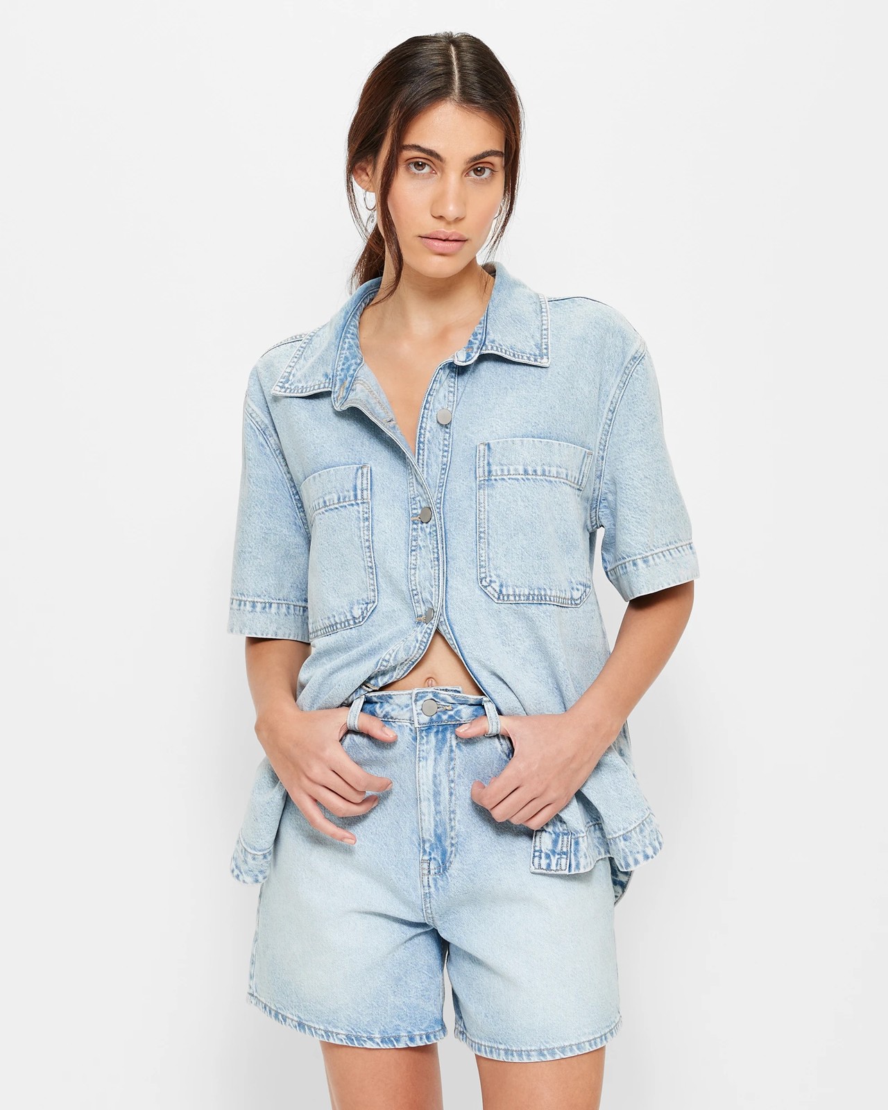Introducing Target Denim's Super High Rise A-Line Denim Shorts! These shorts are the perfect blend of comfort and style. Crafted from a cotton/lyocell blended fabrication, they're designed to be durable and long-lasting. Plus, they contain recycled materials, making them an eco-friendly choice. They feature a regular fit with a structured waistband and belt loops for added detail. The front button and zip fly closure make them easy to put on while the classic 5 pocket design adds even more style.