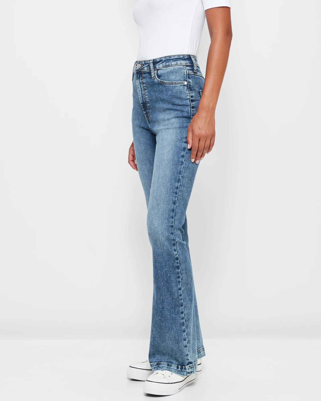 Super High Rise Full Length Flare Denim Jeans - Pacific Blue