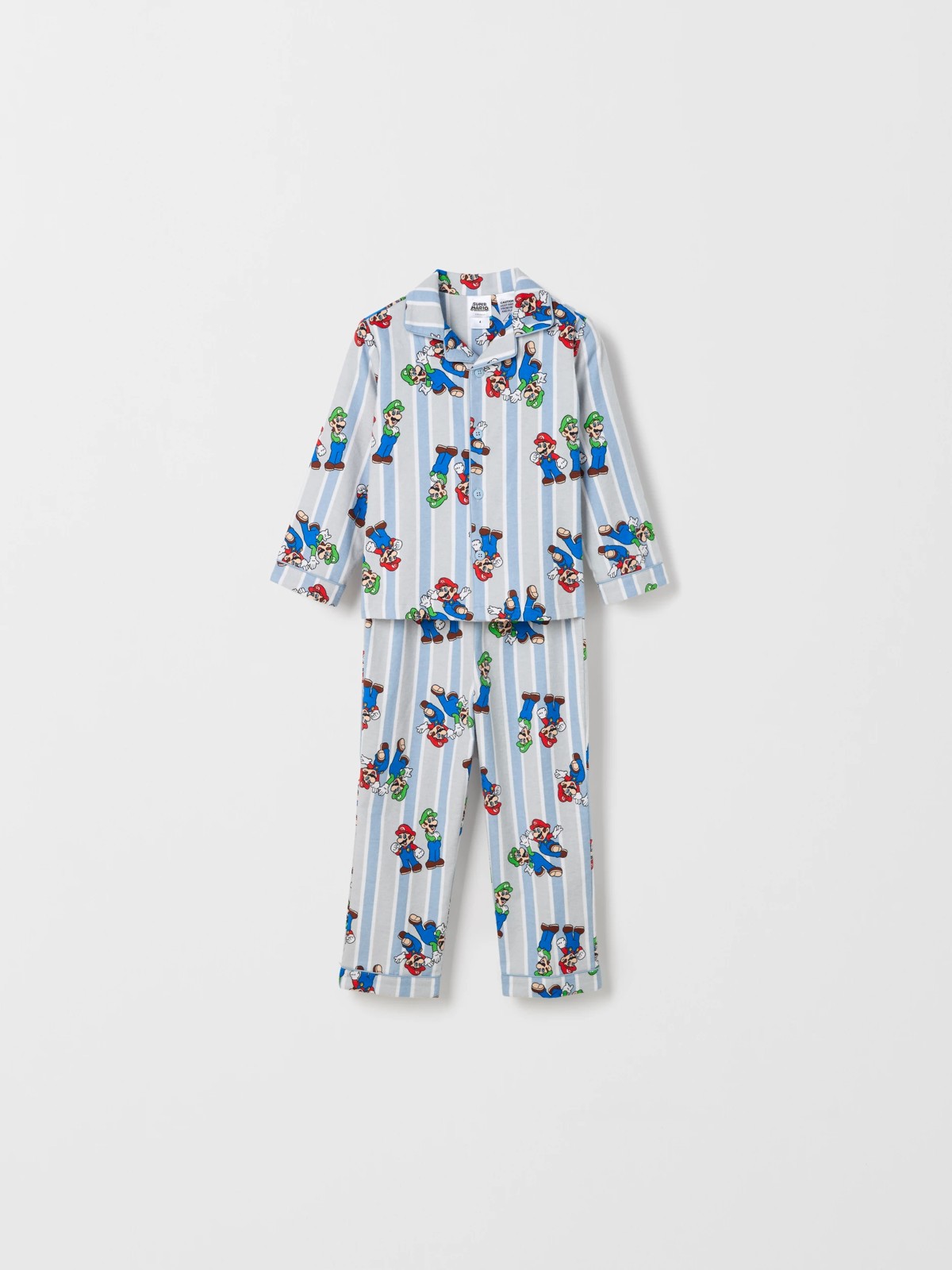 Treat your little adventurer to evenings filled with Super Mario excitement in this comfortable younger boys pyjama set. Made from soft Australian cotton flannel, this two-piece offers a lightweight, breathable feel that’s perfect for winding down after playful days. An all-over Super Mario print brings joy to bedtime, while thoughtful details like the smart square collar, button-down front, and piping around the cuffs add a charming touch. The elastic waistband on the trousers ensures a comfortable, fuss-free fit, making them ideal for lively dreamers. Give your child’s night-time routine a colourful boost, and feel great knowing they’re comfortable right through till morning. Let playtime continue in dreamland—add the Super Mario pyjama set to your basket today!