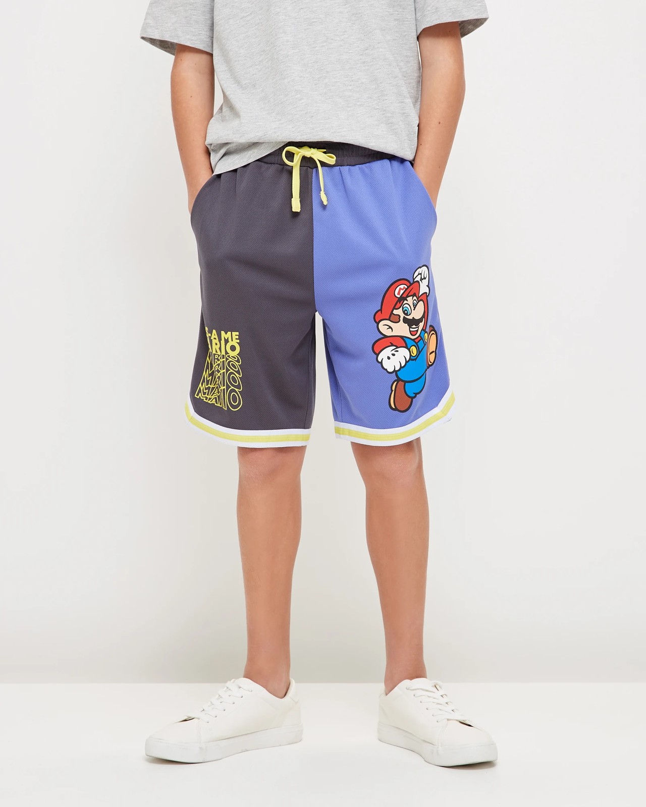 Introducing the Super Mario Basketball Shorts – perfect for any basketball fan! These shorts are crafted from a lightweight polyester fabric with a regular fit and an elastic waistband with drawcord for an adjustable fit. The purple and grey colourway is complemented by side pockets and ribbed trims, plus iconic Super Mario prints to the thighs. Finished with side splits, these shorts will make a great addition to any boys wardrobe.