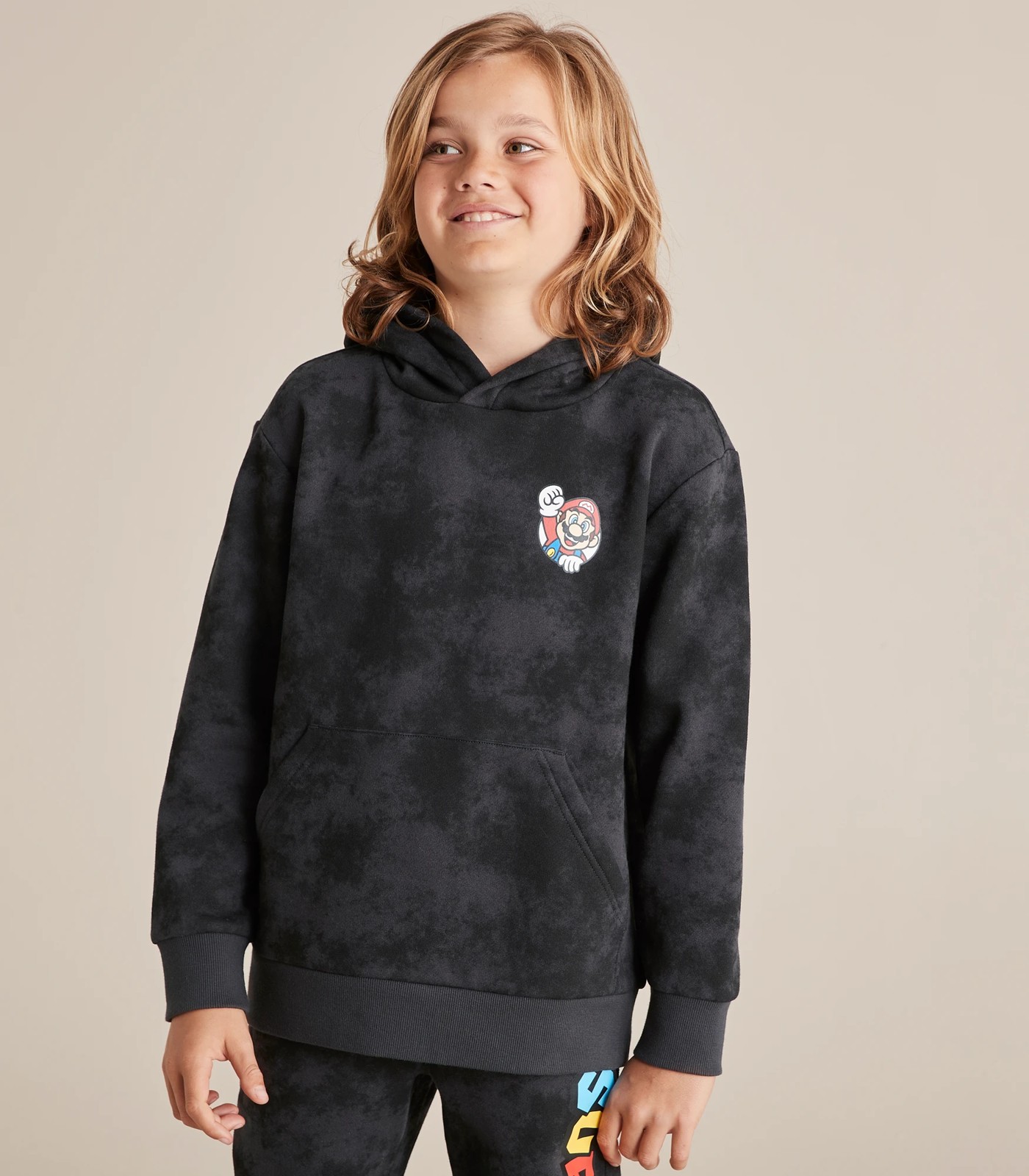 Gaming fans will love the black tie-dye Super Mario Hoodie, featuring a large Mario print to back, a front kanga pocket and fleece lining for extra comfort and warmth.