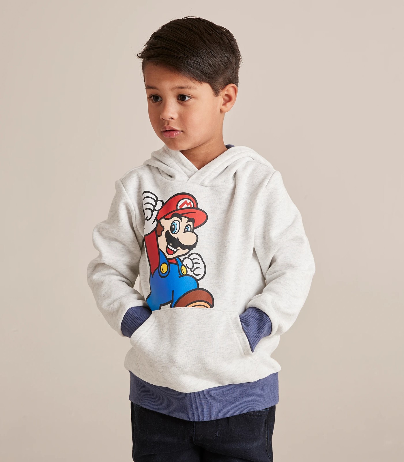 Gaming fans will love the grey marle Super Mario Hoodie, featuring a large Mario print to chest, front kanga pocket, hood with printed lining and fleece lining for extra comfort and warmth.