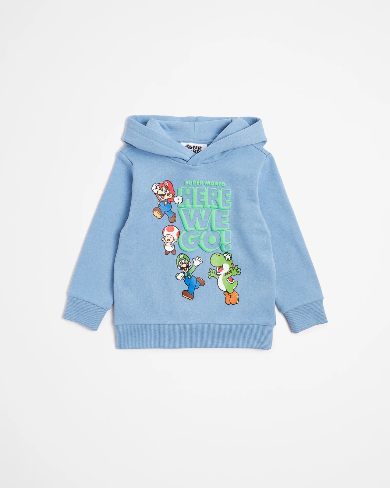 Jump into the world with our boys' Super Mario hoodie! Made from a cotton-rich fabric, this blue hoodie offers a regular fit that's both comfortable and stylish. The large Mario print on the front brings an adventurous spirit to every day, while the fleece lining keeps you warm during your outdoor quests. Long sleeves with ribbed cuffs provide extra comfort, and the straight ribbed hem completes the look. Perfect for young fans who want to bring a bit more excitement to their daily routine. Grab yours now and let the adventures begin!